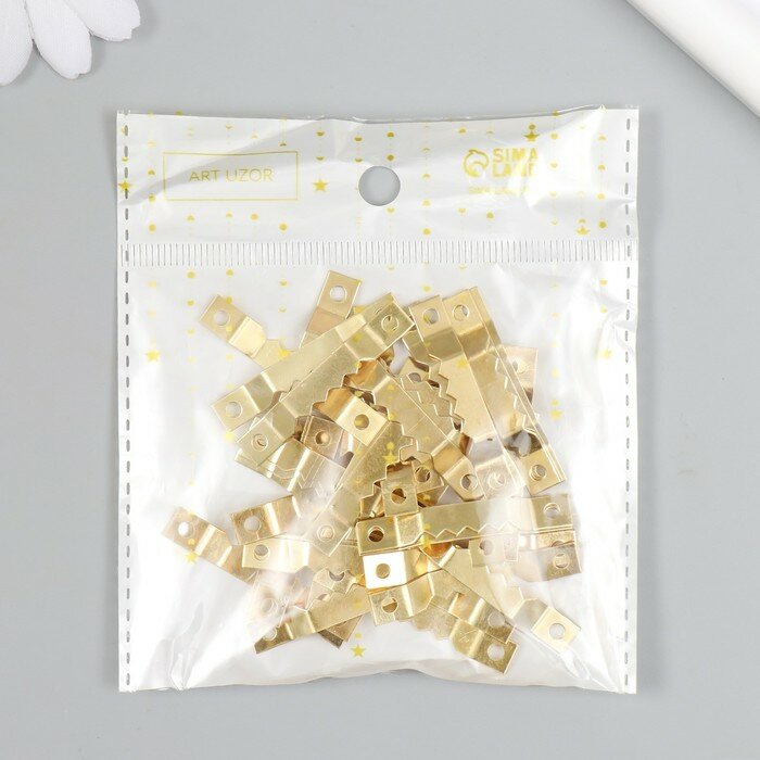 10 цен на Зубчатая подвеска для картин, фоторамок металл (набор 40 шт) золото 4х0,5 см