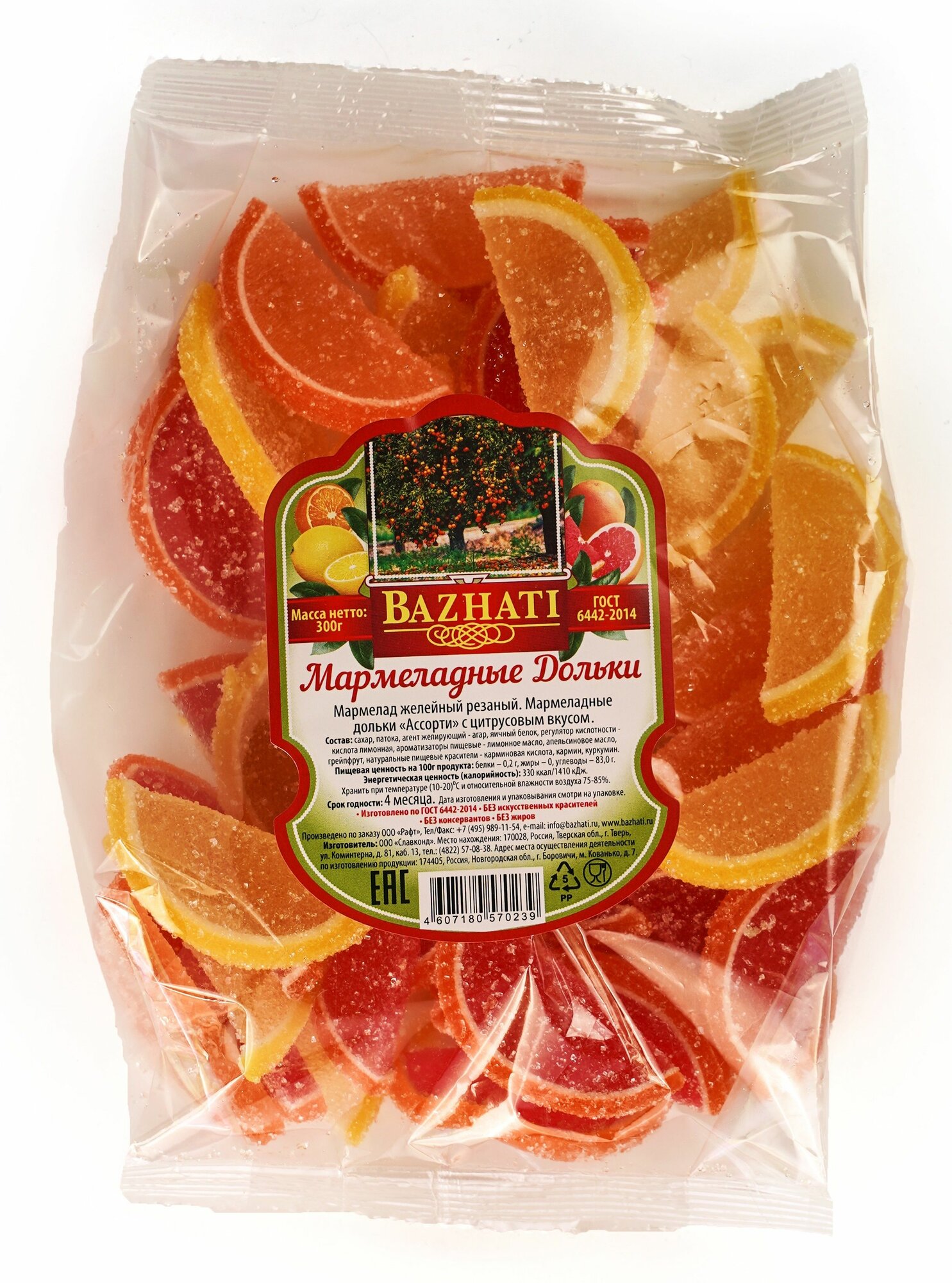 Мармеладные дольки "Bazhati" ассорти с цитрусовым вкусом (лимон, апельсин, грейпфрут) 300гр. информация: