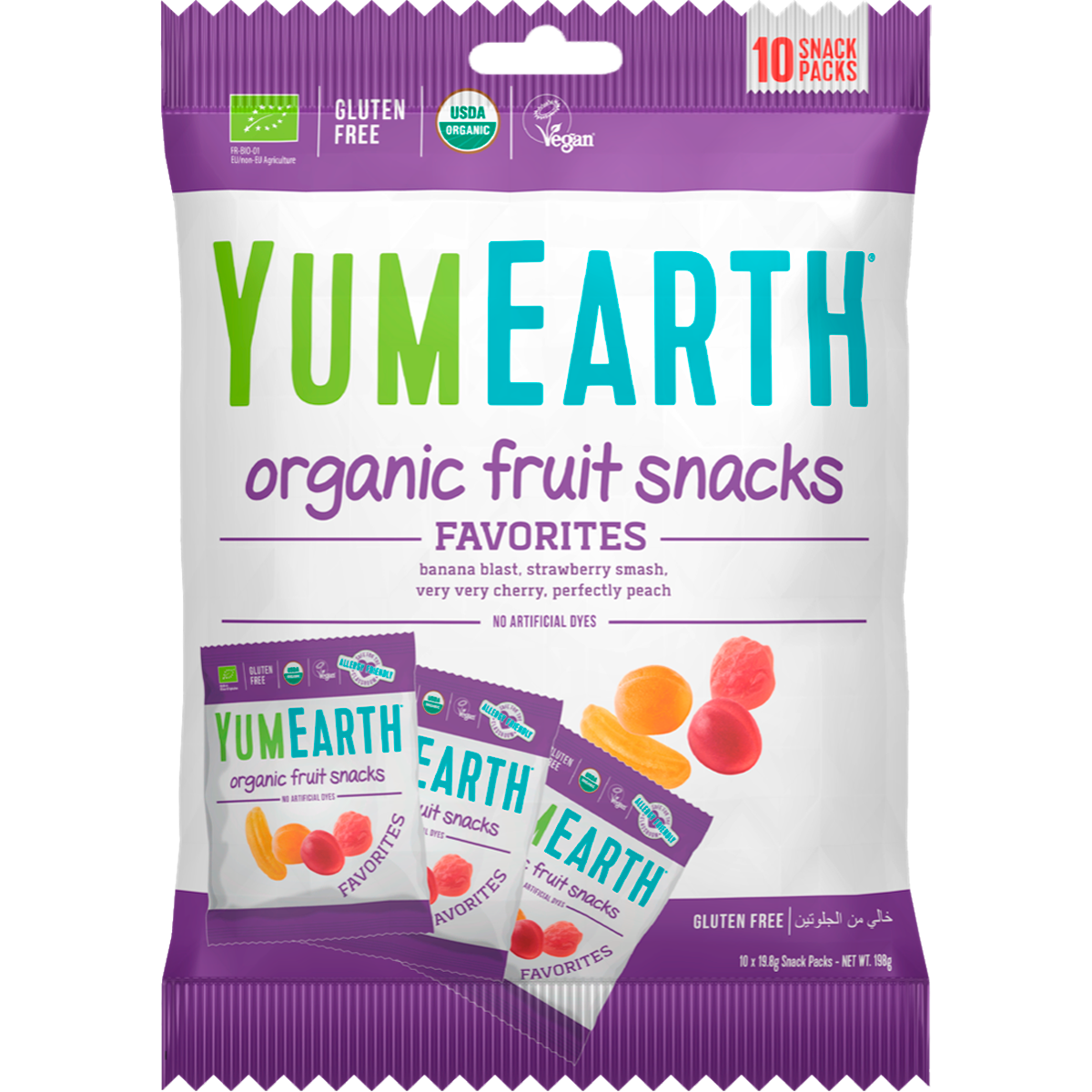 Мармелад YumEarth, органический, без глютена и без аллергенов, 4 вкуса, 10 порционных пакетов по 19,8 грамм информация: