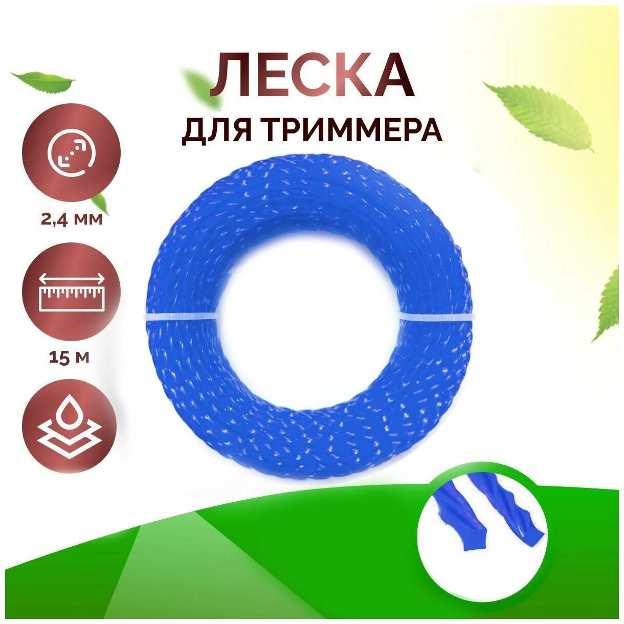 Леска для триммера, газонокосилки, крученая, 2,4 мм, длина 15 м, синий информация:
