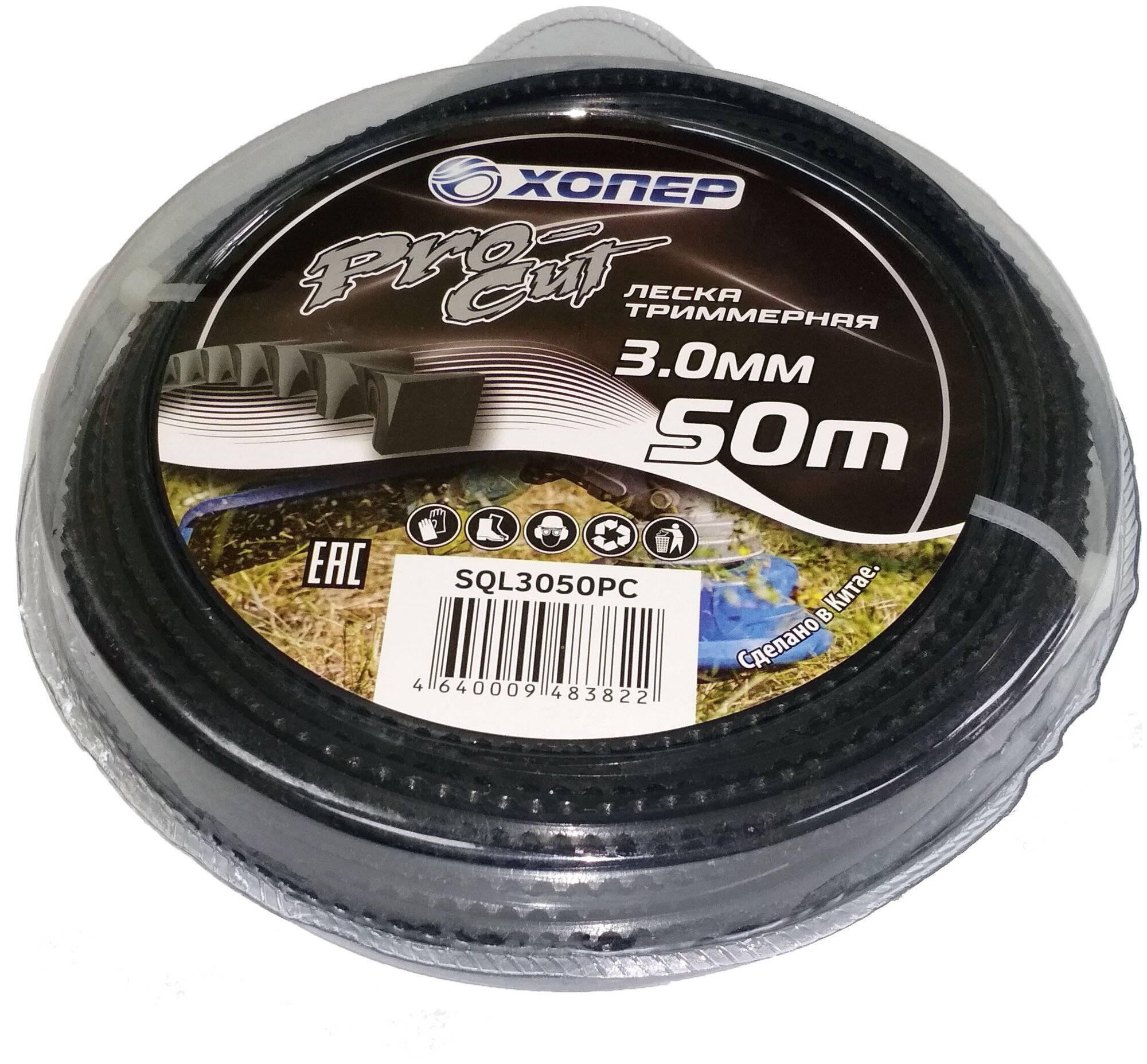 10 цен на Леска для триммера 3.0 мм 50 метров, форма цепной зуб черная Хопер PRO-CUT