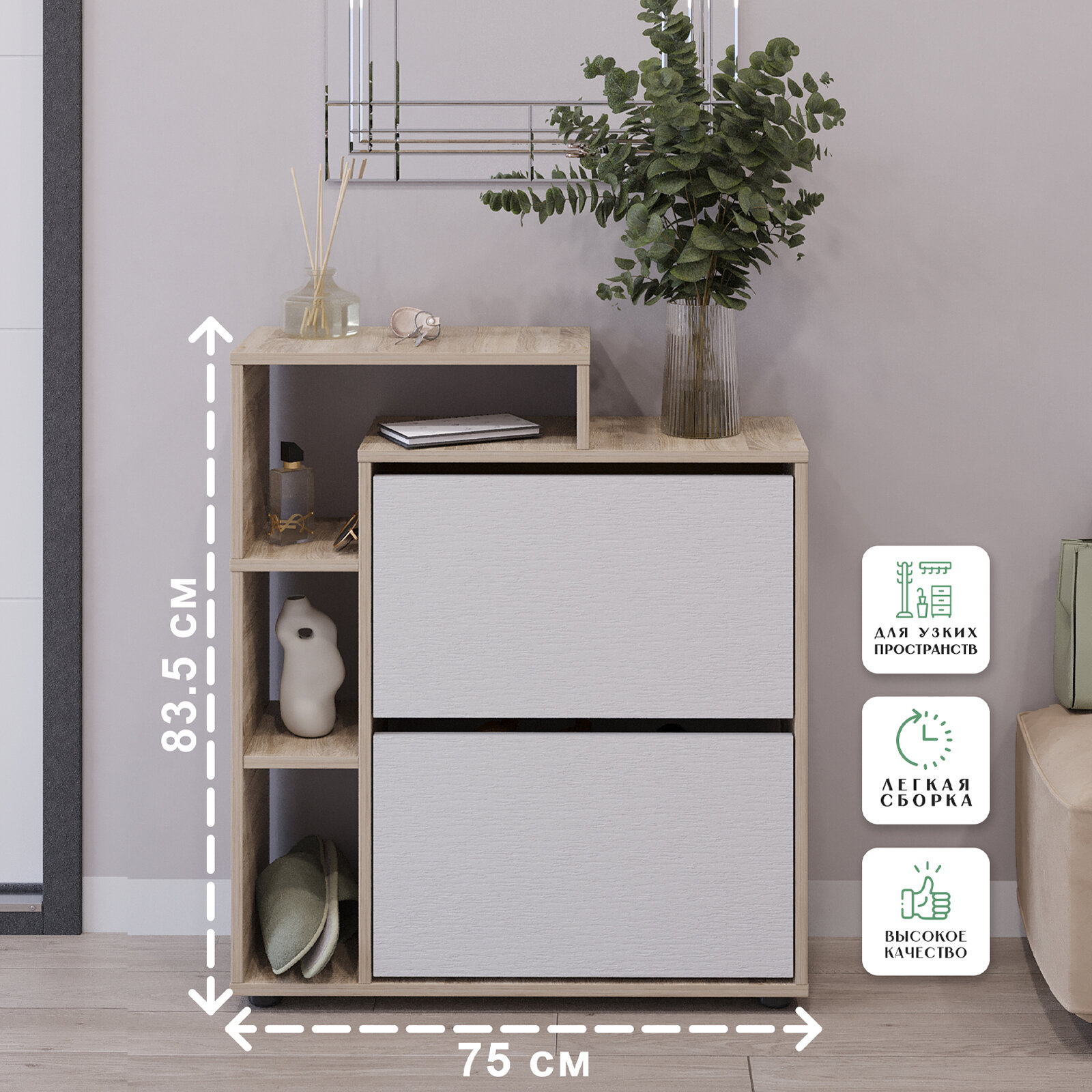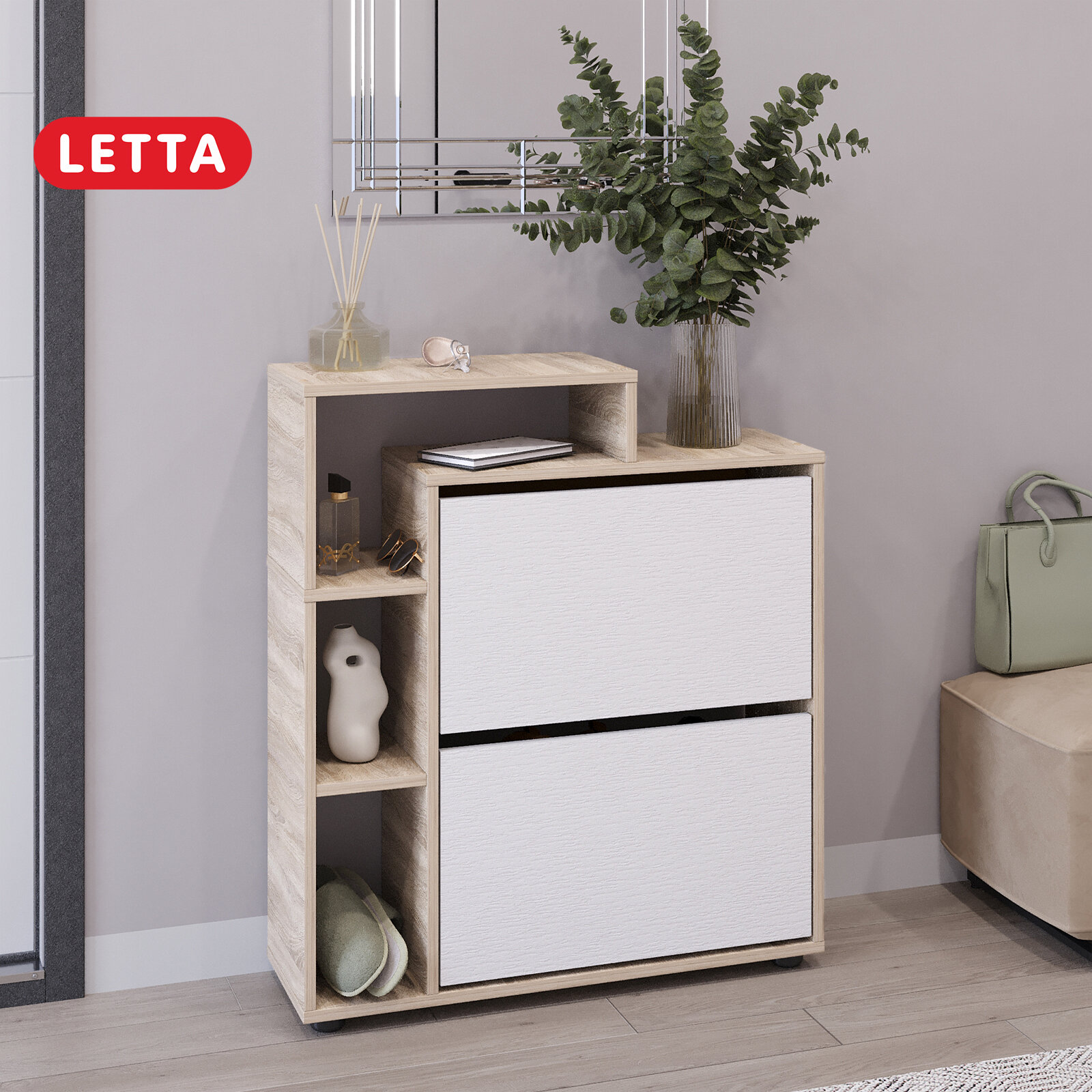 Обувница Ultra Plus вертикальная 2 секции Дуб сонома/Белое тисн. 750х859х246 информация: