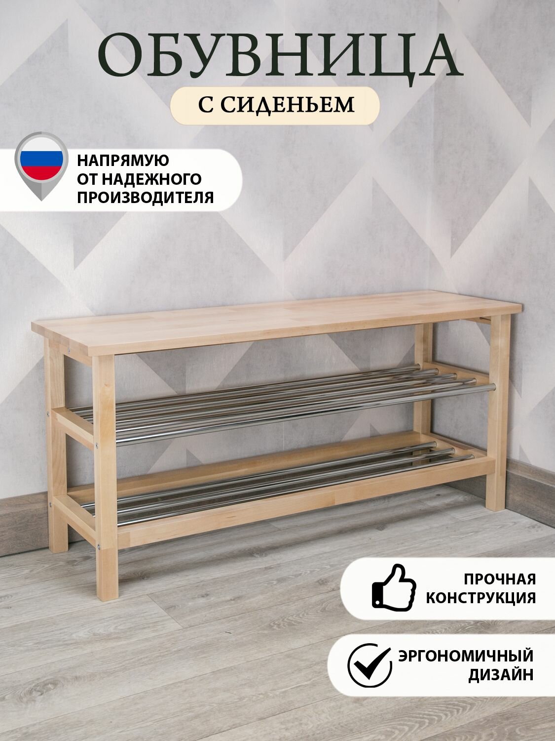10 цен на Обувница "Восток" с сиденьем, 108х34х55см, массив дерева, цвет бесцветный