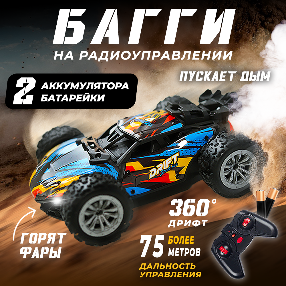 Машинка радиоуправляемая на пульте управления с дымом сине-желтая информация: