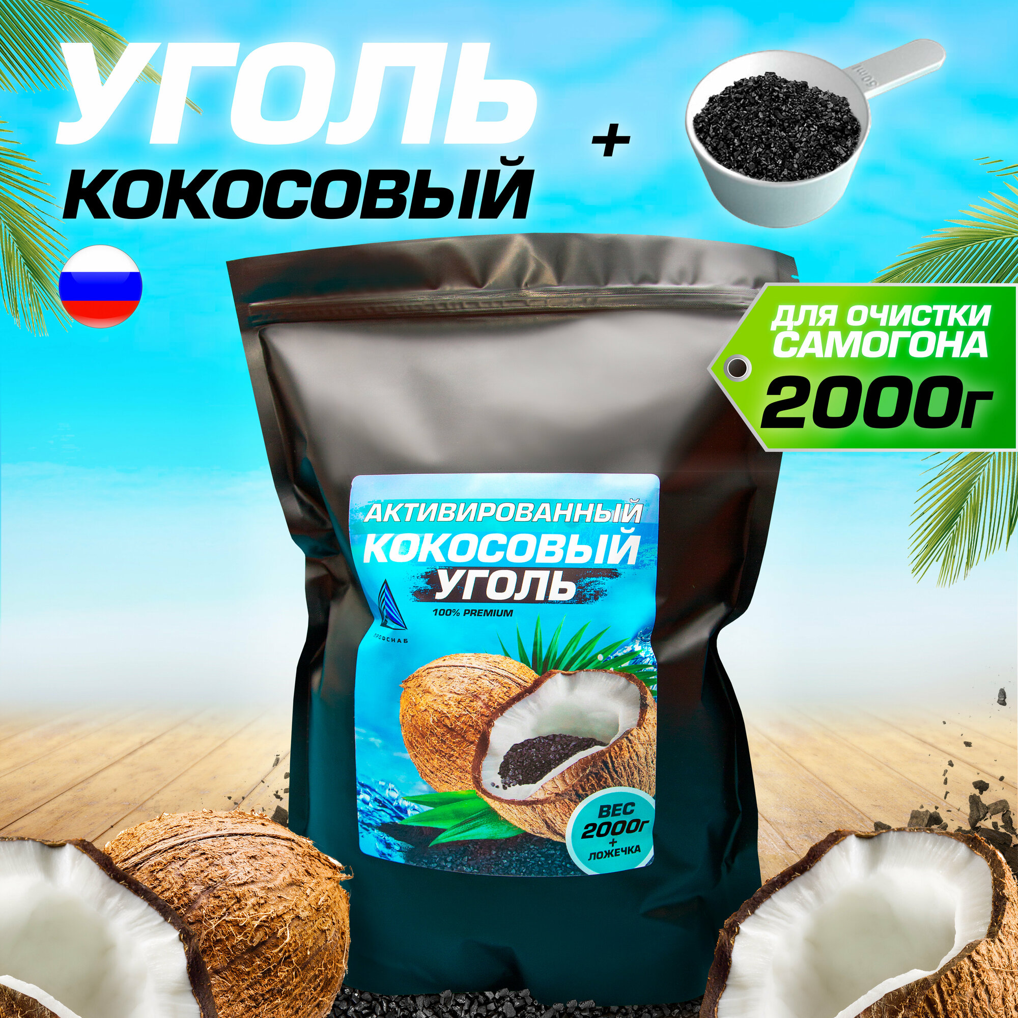 Уголь кокосовый активированный 2,0 кг для очистки самогона и воды информация: