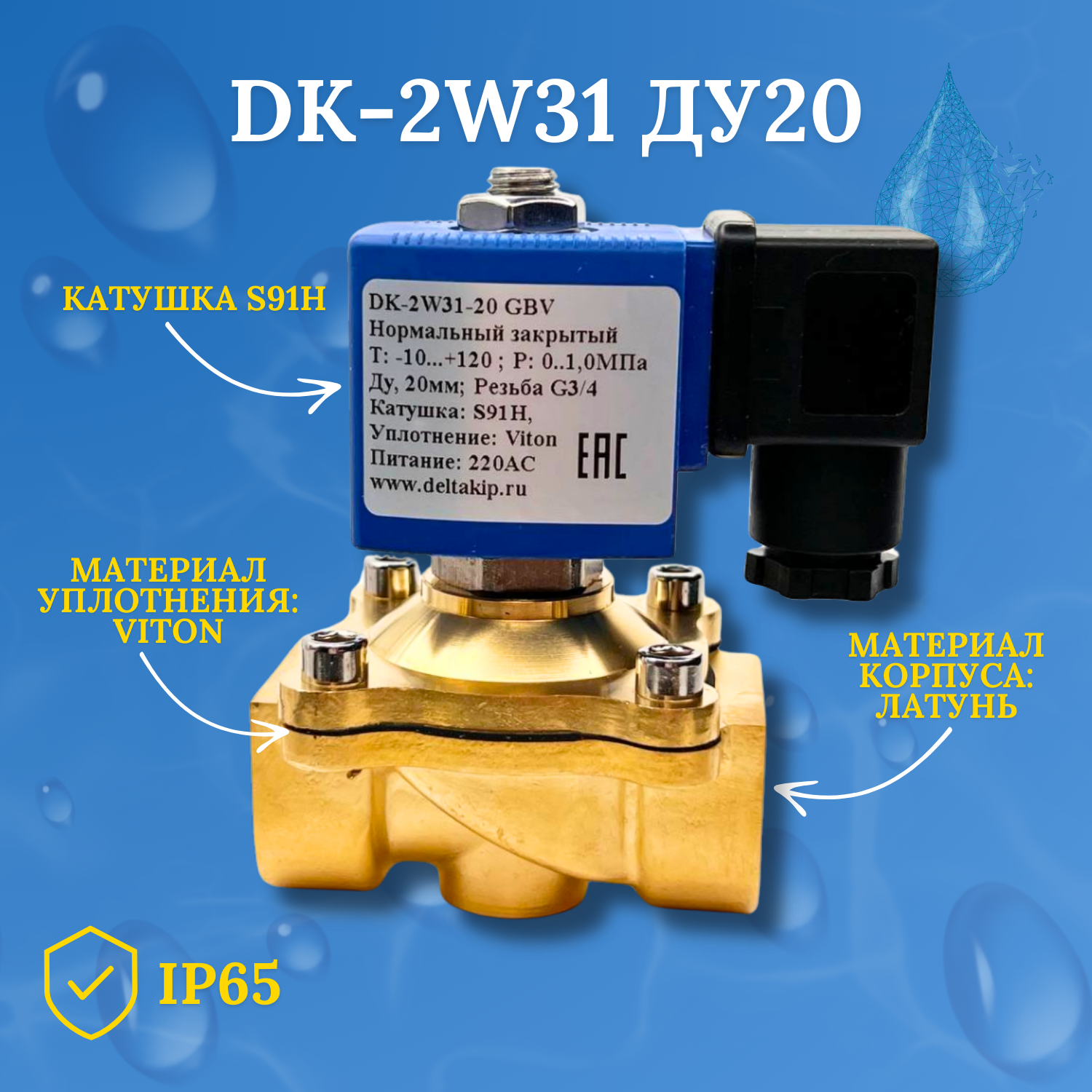 Отзывы на Клапан соленоидный (электромагнитный) нормально закрытый DK-2W31 Ду20 (латунь) 220АС