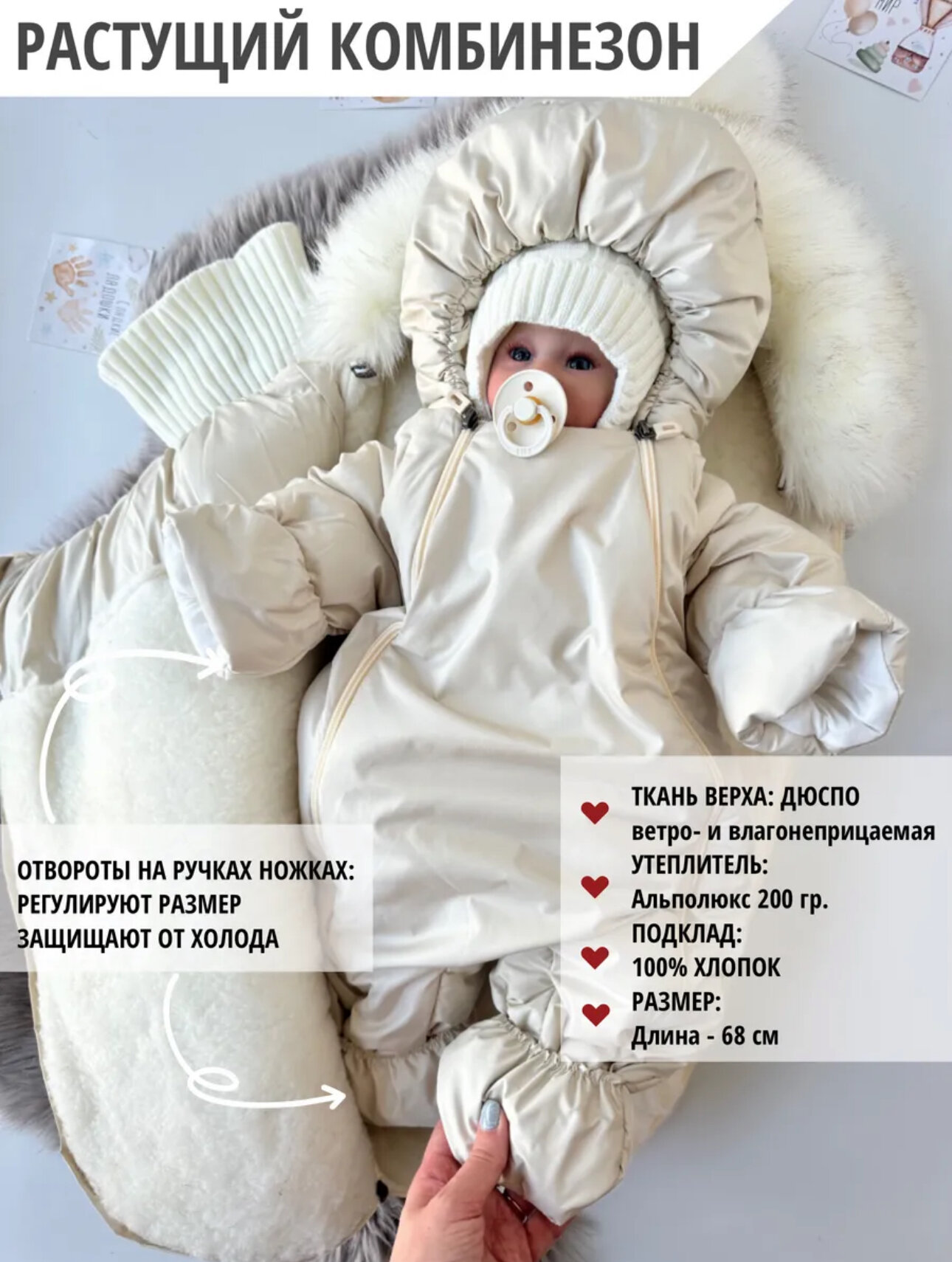 Конверт на выписку и прогулки зимний на овчине 4 предмета молочный информация:
