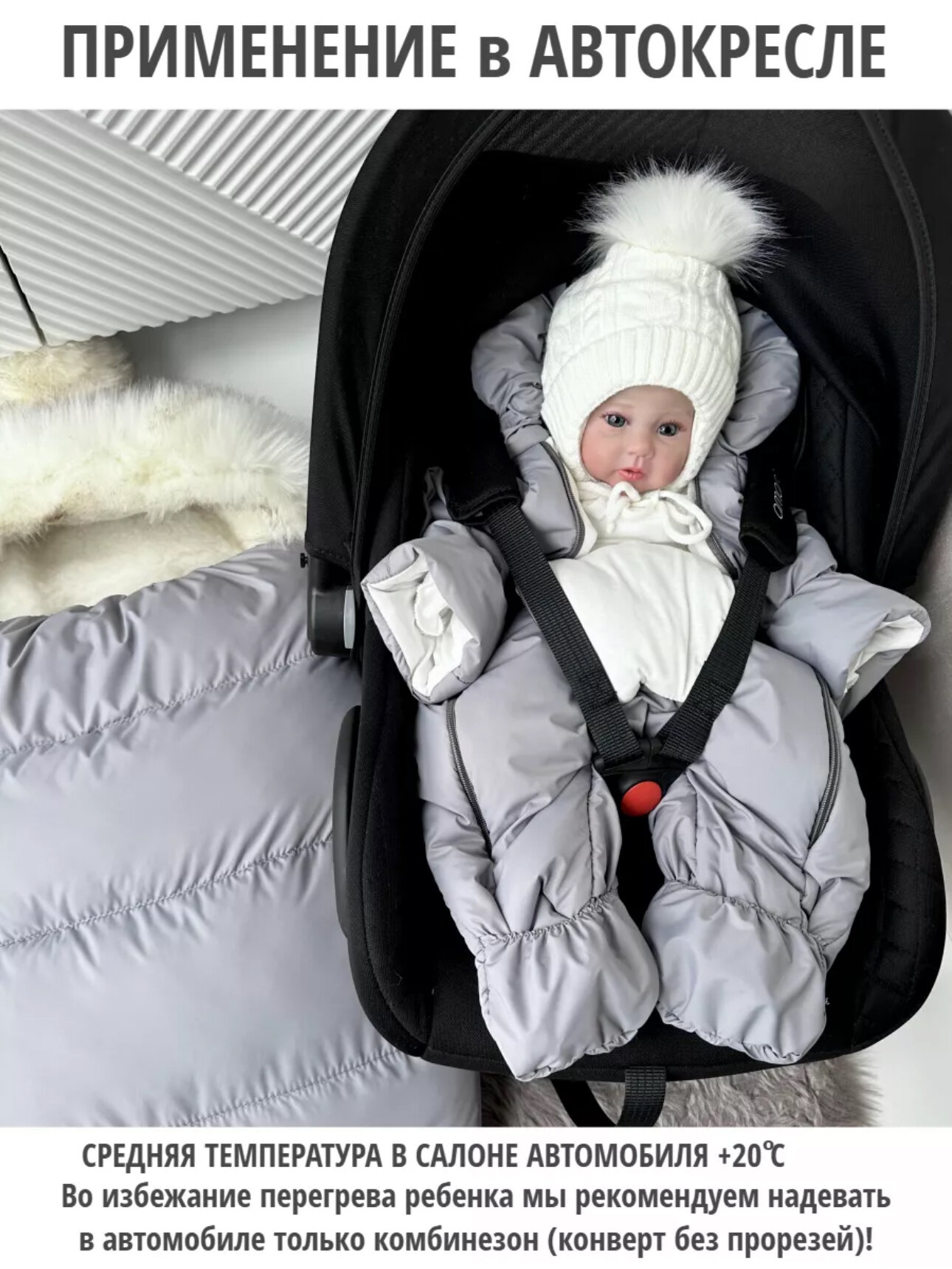 Отзывы на Конверт на выписку и прогулки зимний на овчине 4 предмета серый