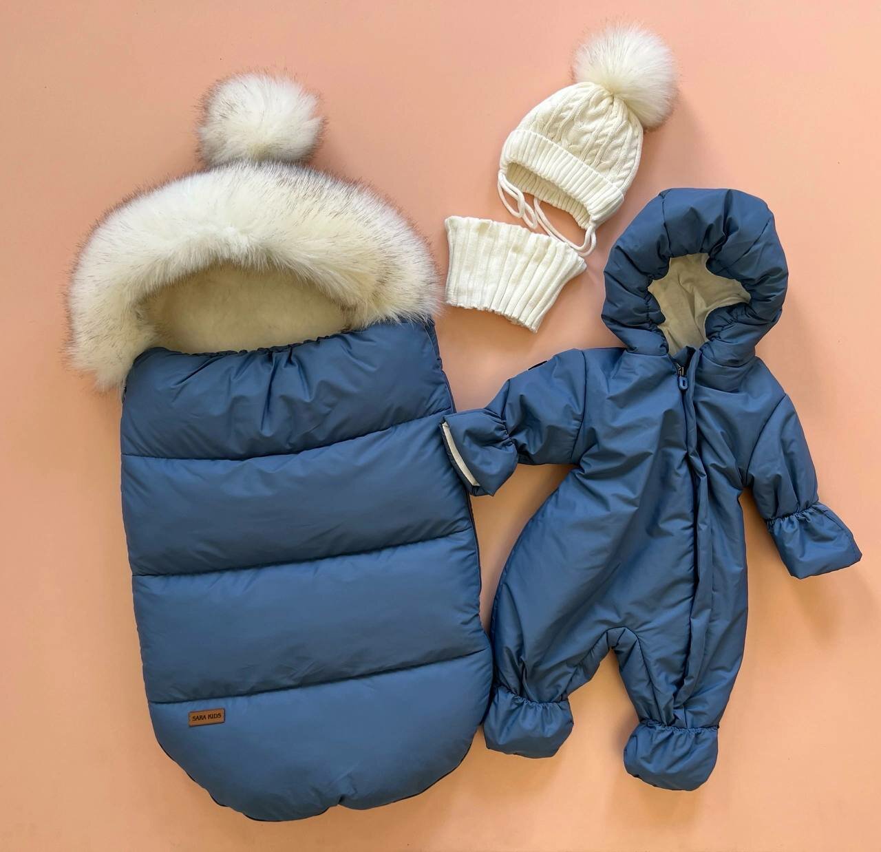 Конверт на выписку и прогулки зимний на овчине 4 предмета синий информация: