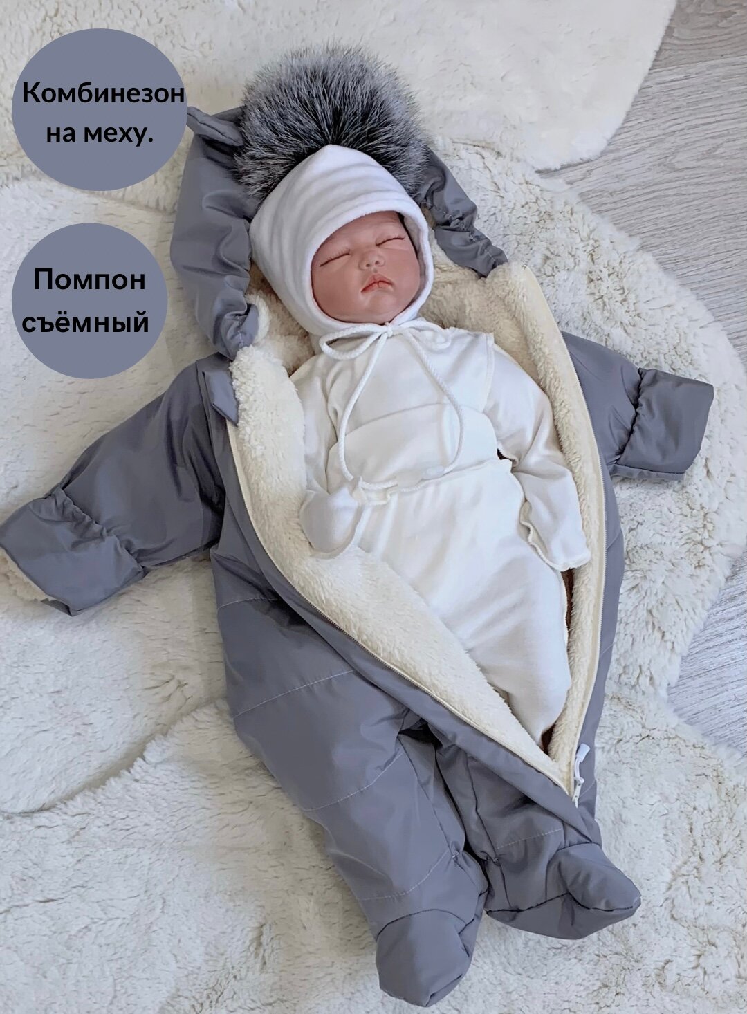 | Особенности | капюшон / на выписку / полностью расстегивается / прорези для ремней безопасности / с защитой от ветра / с рукавами |