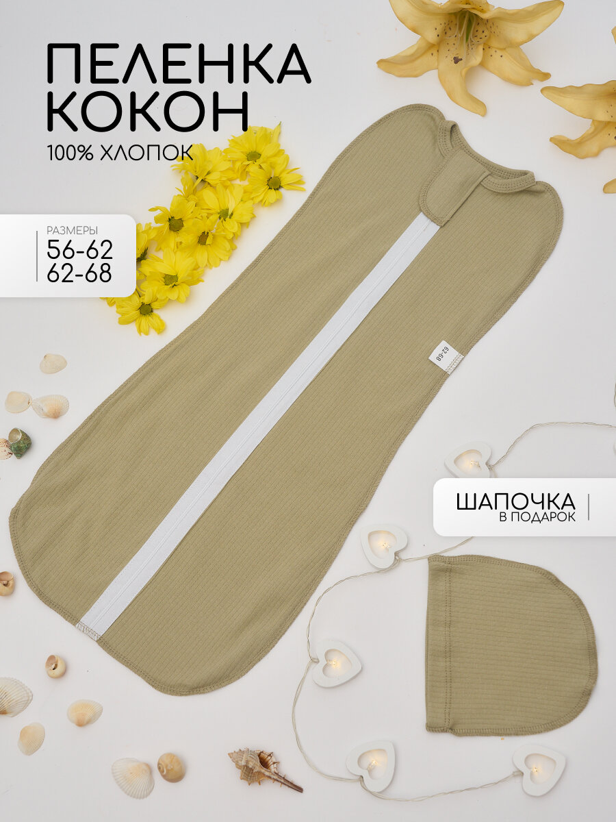 Конверт для новорожденных на молнии, пеленка кокон для малышей, 56-62, оливковый информация: