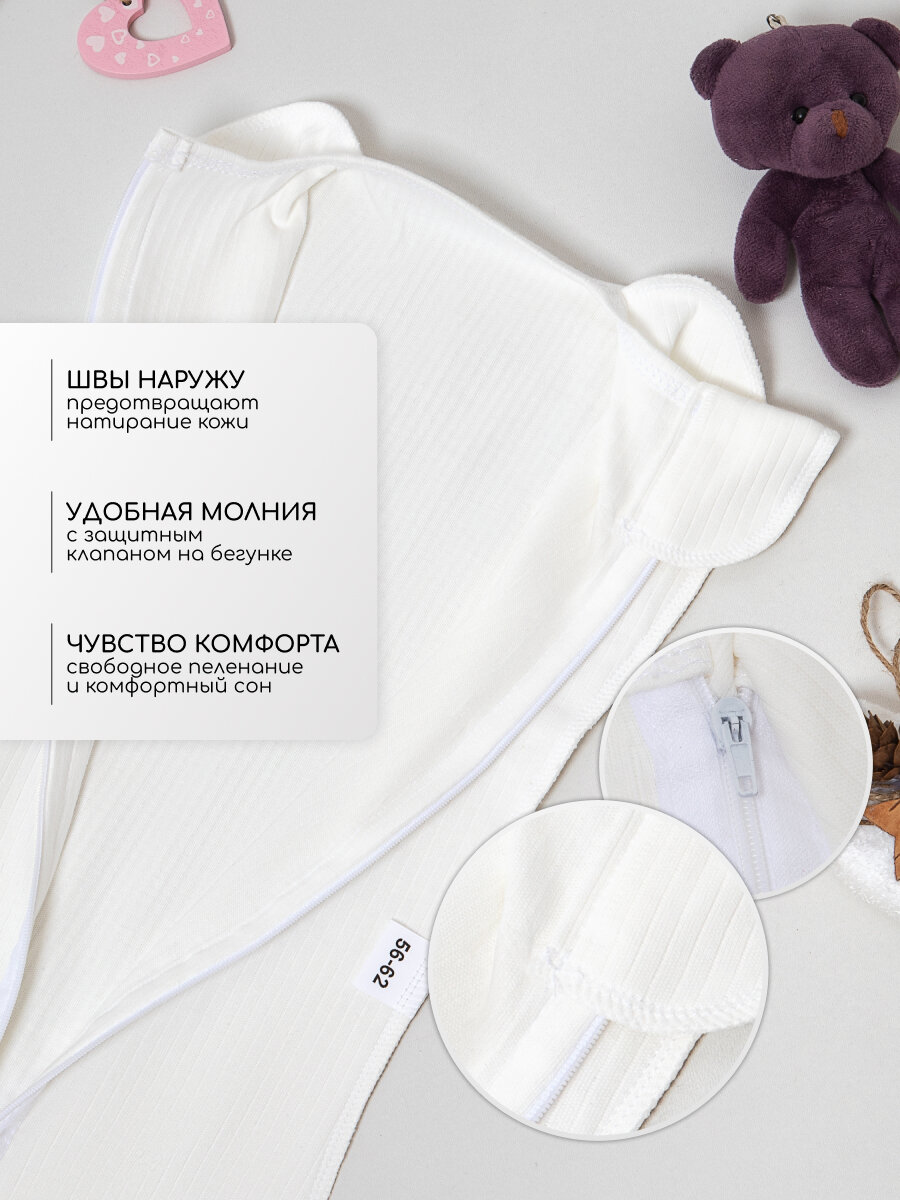Конверт для новорожденных на молнии, пеленка кокон для малышей, 62-68, молочный информация: