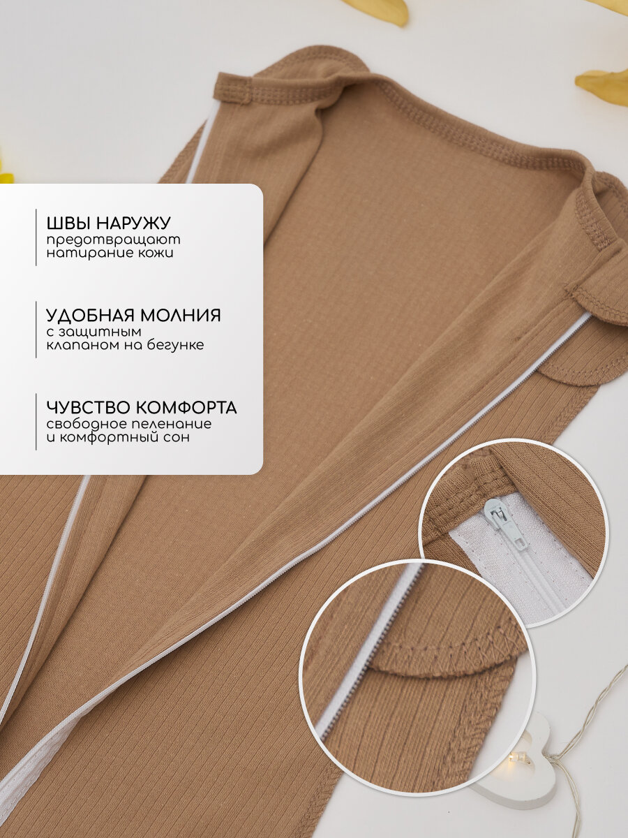 Конверт для новорожденных на молнии, пеленка кокон для малышей, 62-68, шоколад информация: