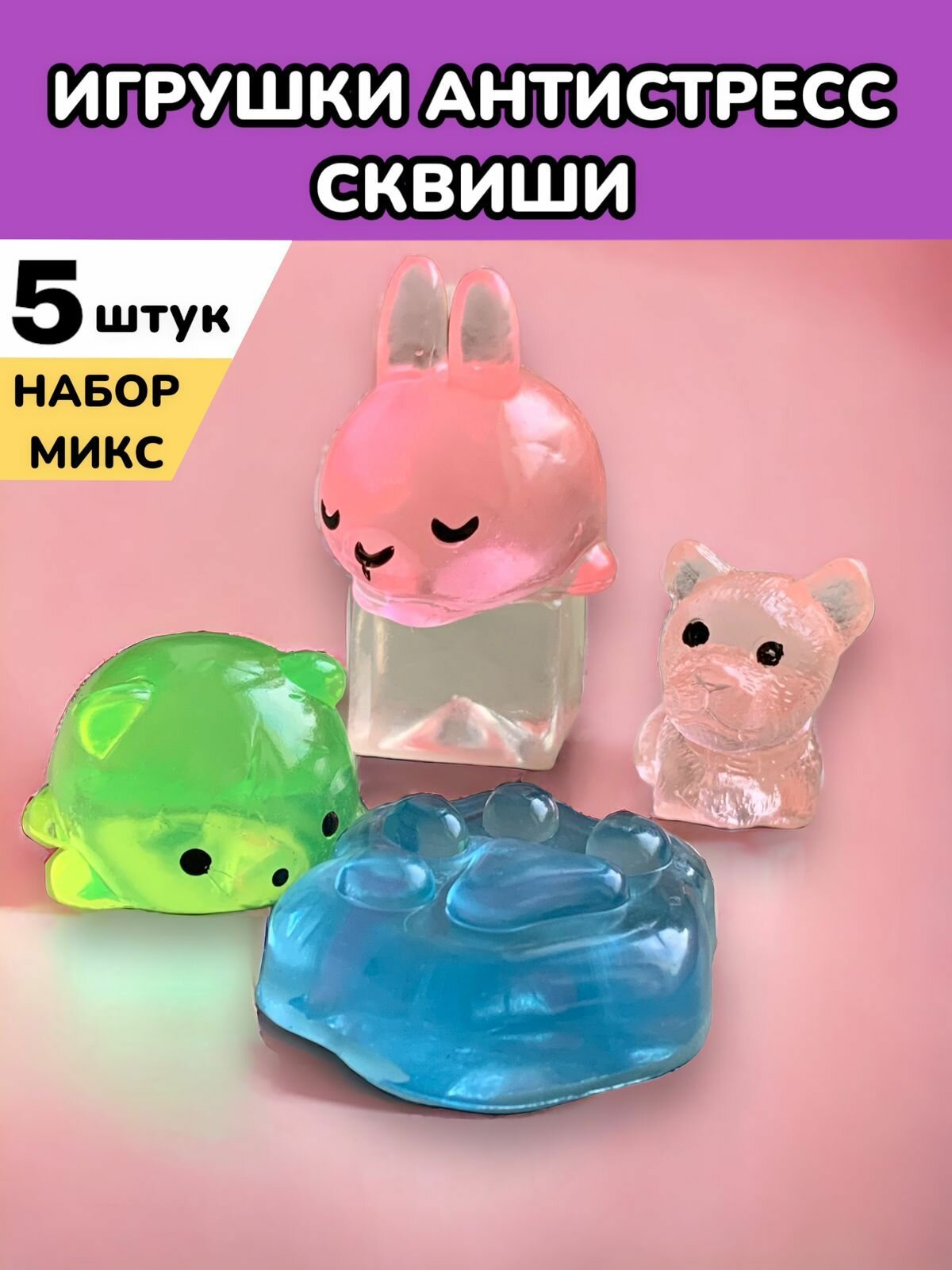 Набор игрушек-антистресс Сквиши Милые мягкие животные 5 штук информация: