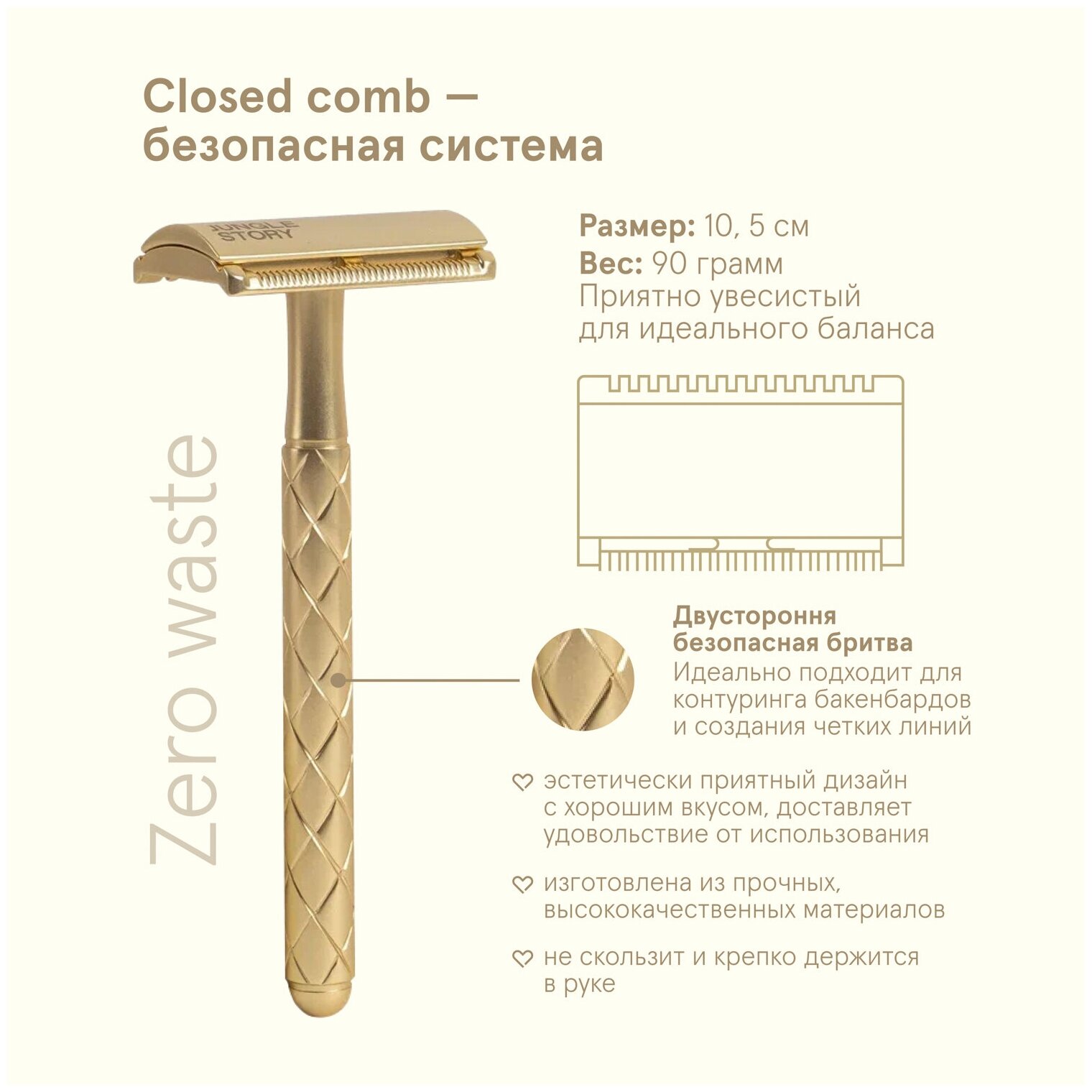 Безопасный бритвенный Т- образный станок мужской Золотой в подарочной упаковке на магните + 5 лезвий комплект информация: