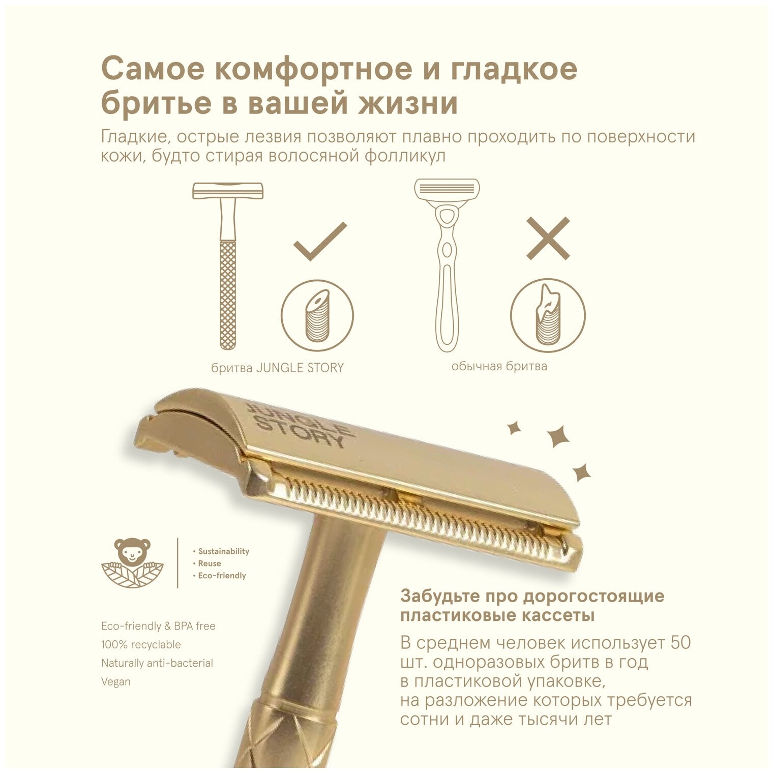 Лезвия Jungle Story, нержавеющая сталь, для Т-образной бритвы, 15 штук