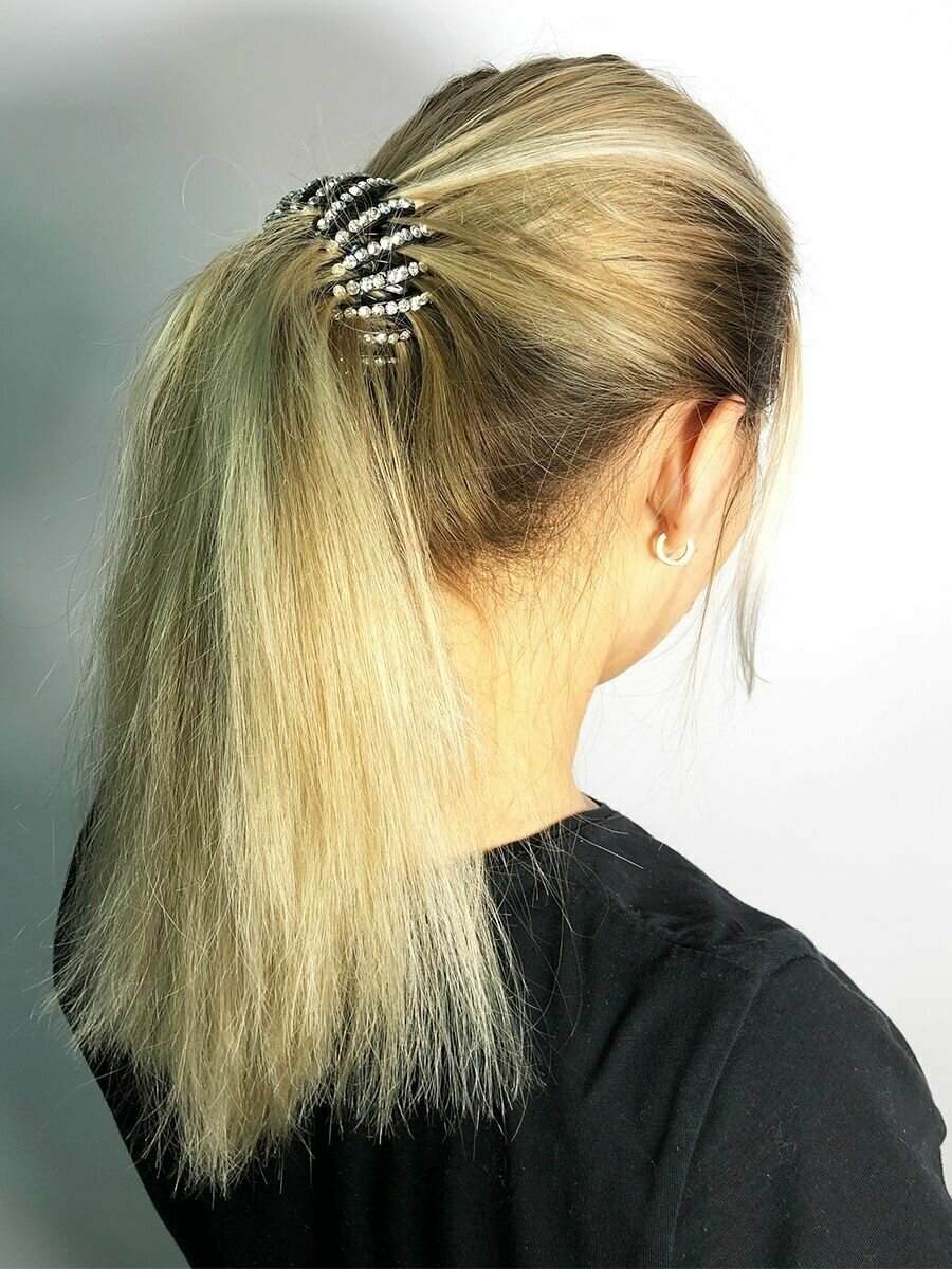 10 цен на Заколка для пучка хвоста култышки со стразами средний размер