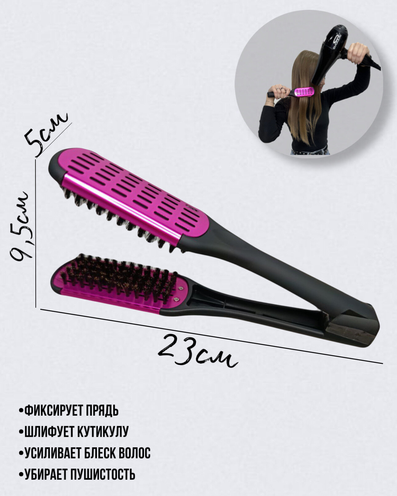 | Особенности | для влажных волос / для вьющихся волос / для нарощенных волос / продувная |