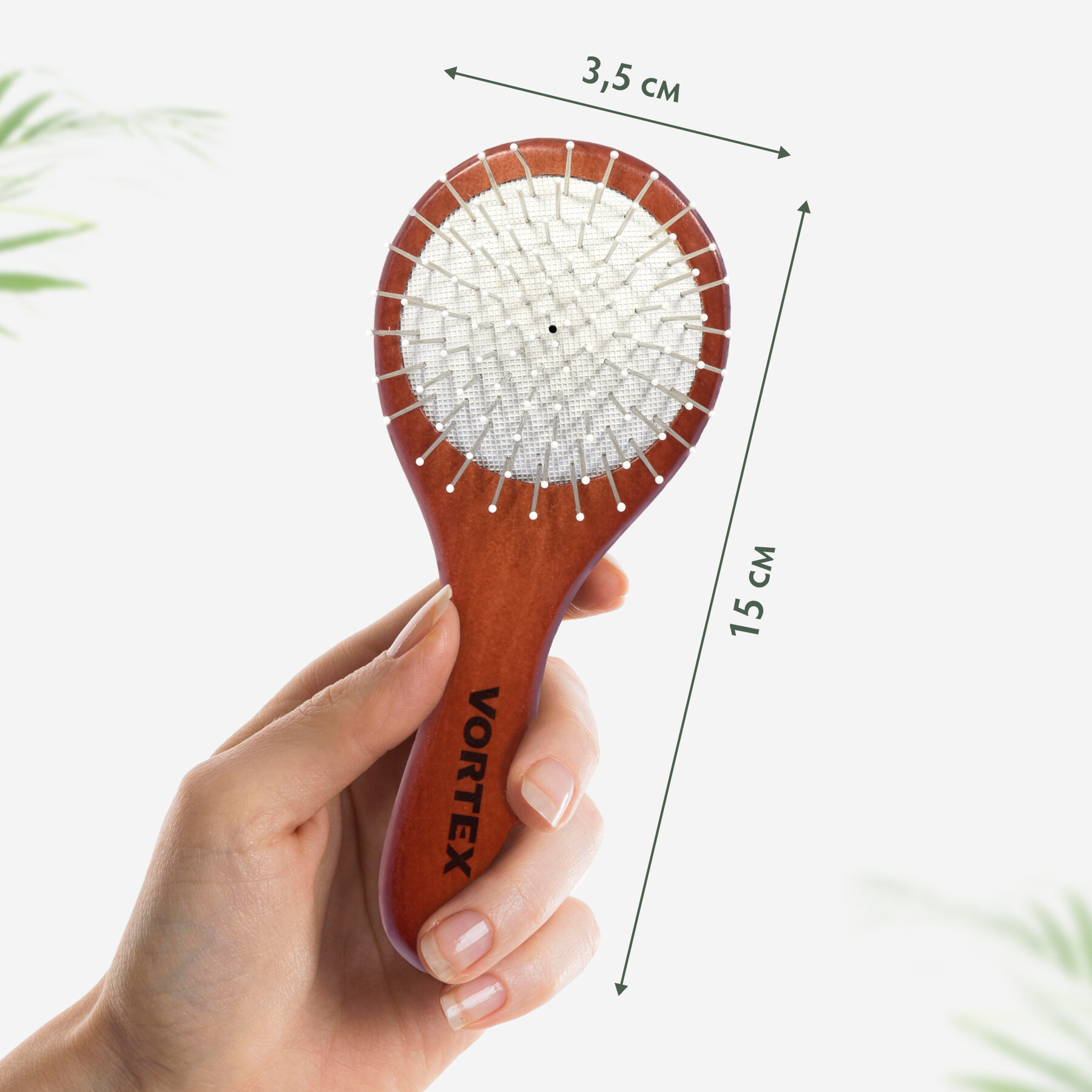 10 цен на Расческа деревянная, массажная /для волос/с ручкой/для укладки 15х6х3,5 см, "круг", с металлическими зубчиками "VORTEX"