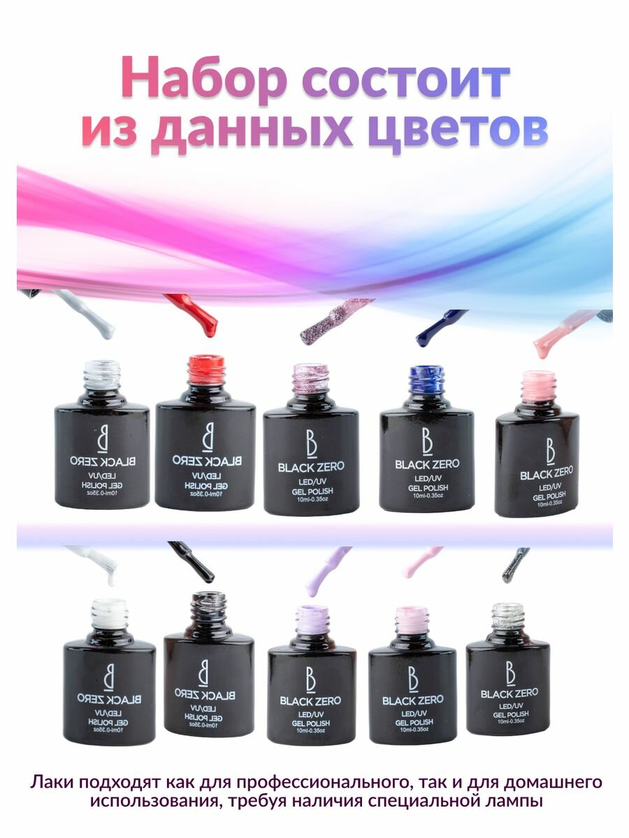 Набор гель-лаков "BlackZero" из 10 штук по 7,5 мл информация: