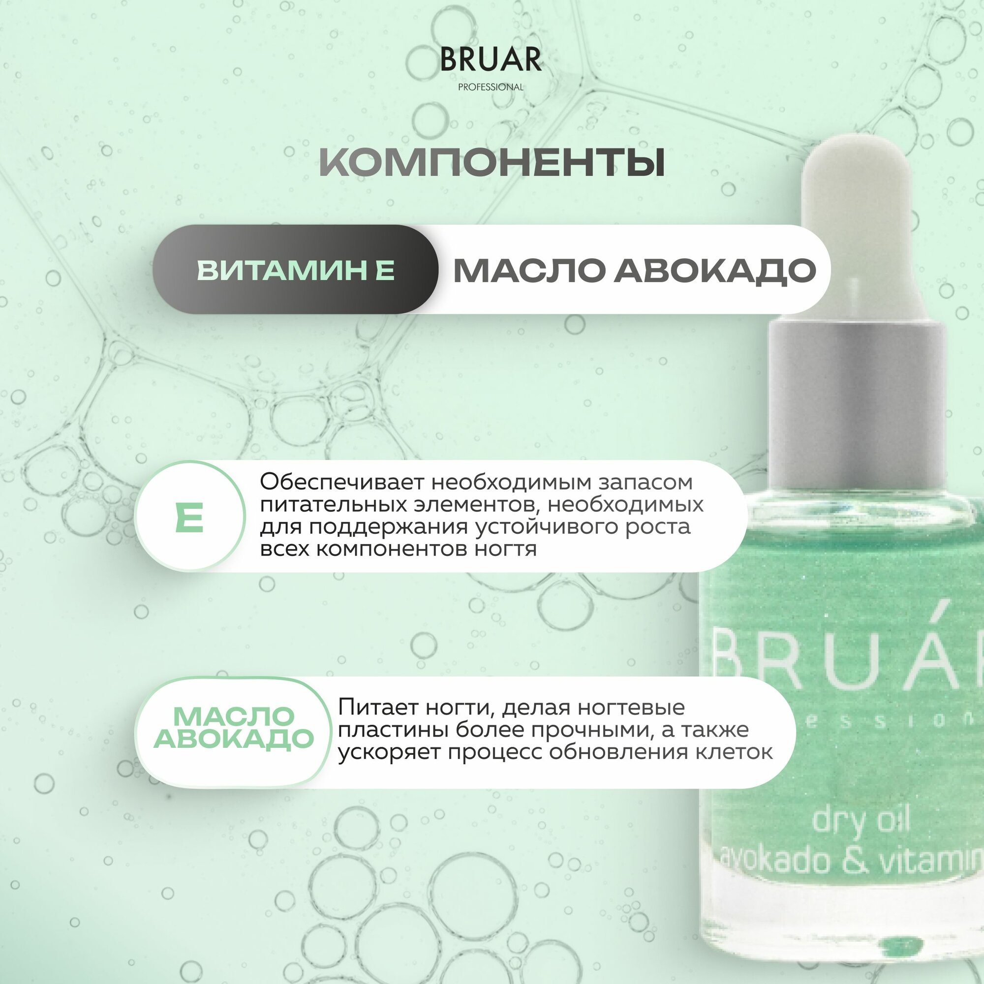 10 цен на Масло для ногтей и кутикулы сухое с Авокадо и Витамином Е Bruar, 11мл