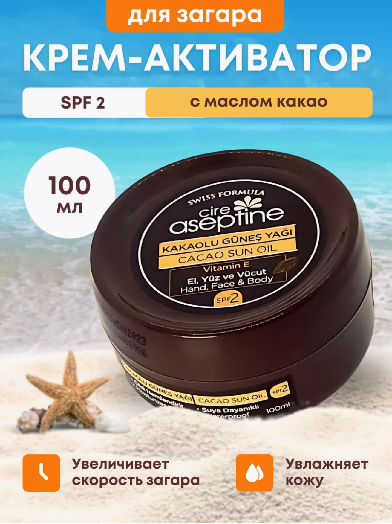 Крем для загара 2 SPF с маслом какао, 100 мл, Dark Tanning Cream 2 SPF Cocoa Oil информация: