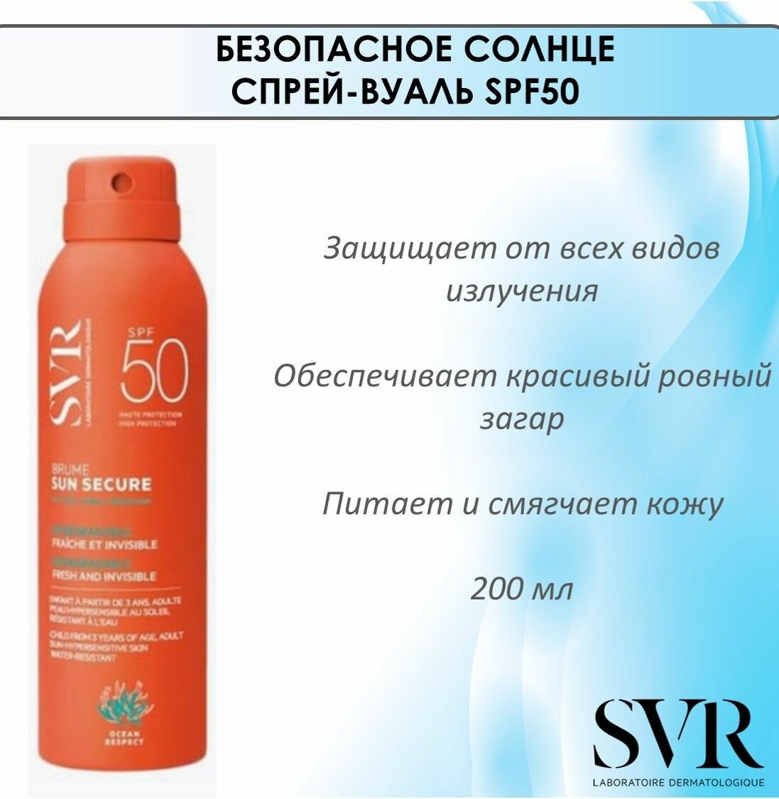 SVR Безопасное солнце спрей-вуаль SPF 50 Sun Secure, 200 мл информация: