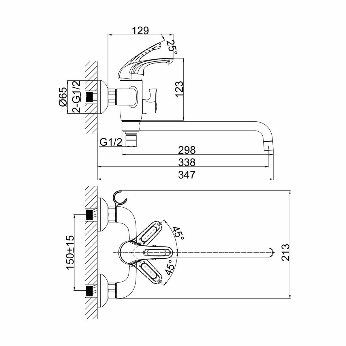 Смеситель на раковину настенный Эверест B46-350 с круглым поворотным изливом, кран-буксы 1/2", хром