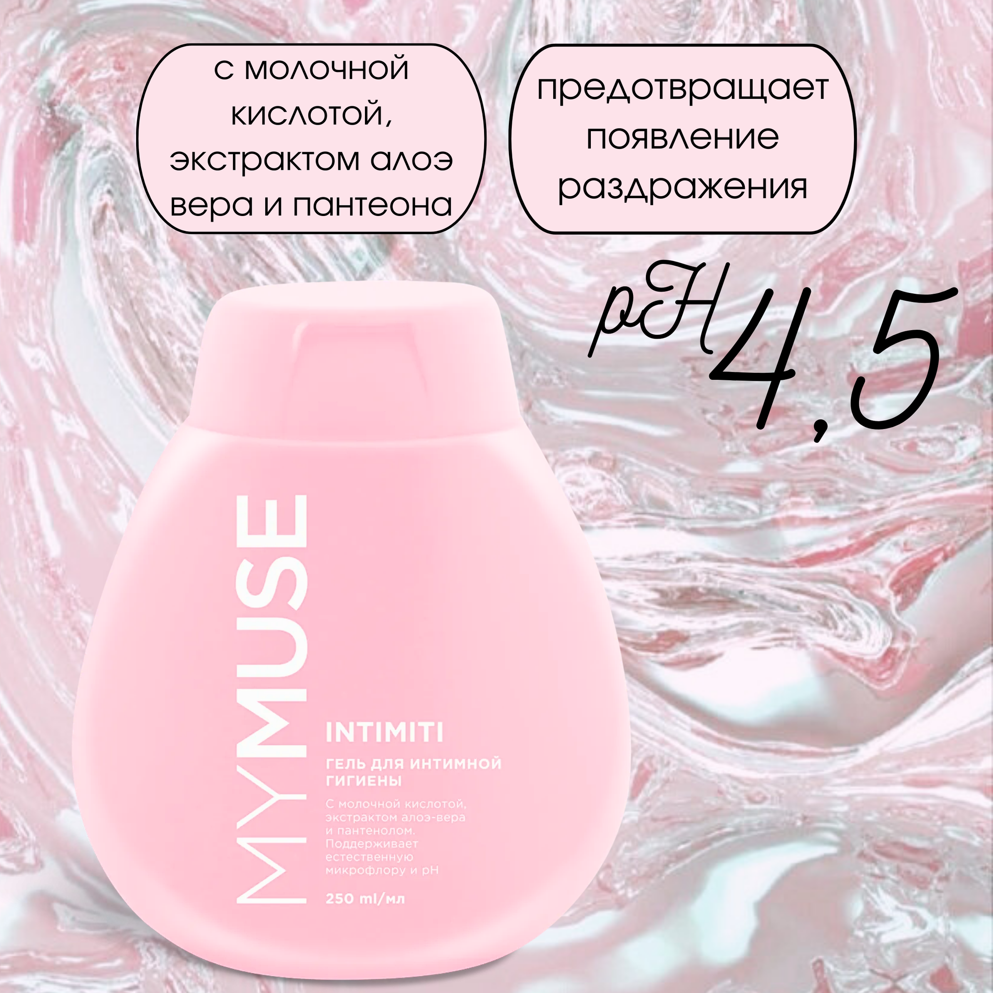 Гель для интимной гигиены для чувствительной кожи MY MUSE с молочной кислотой, алоэ и пантенолом, 250 мл