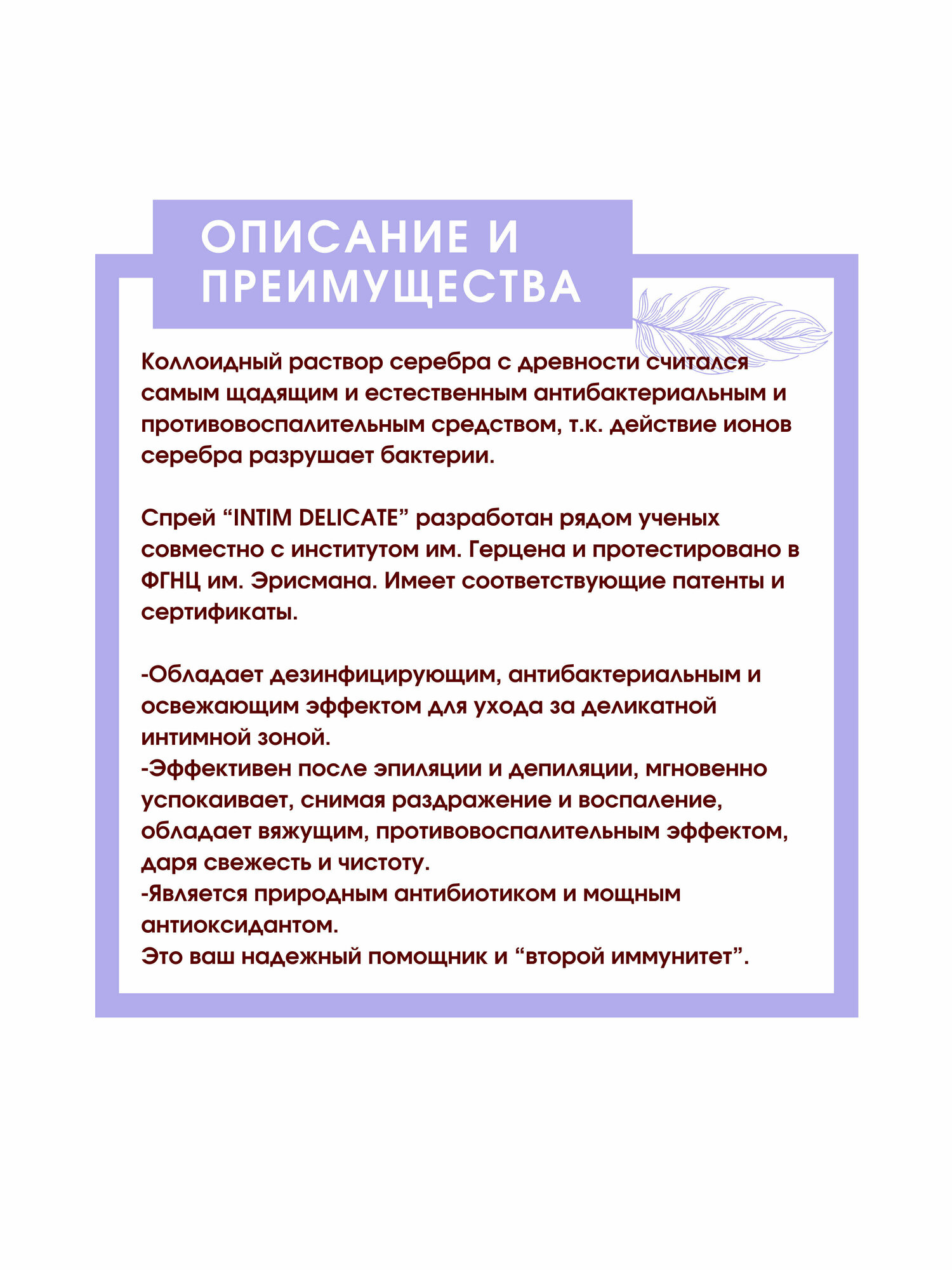 Коллоидное серебро для интимной гигиены " Silver Pure "INTIM DELICATE" информация: