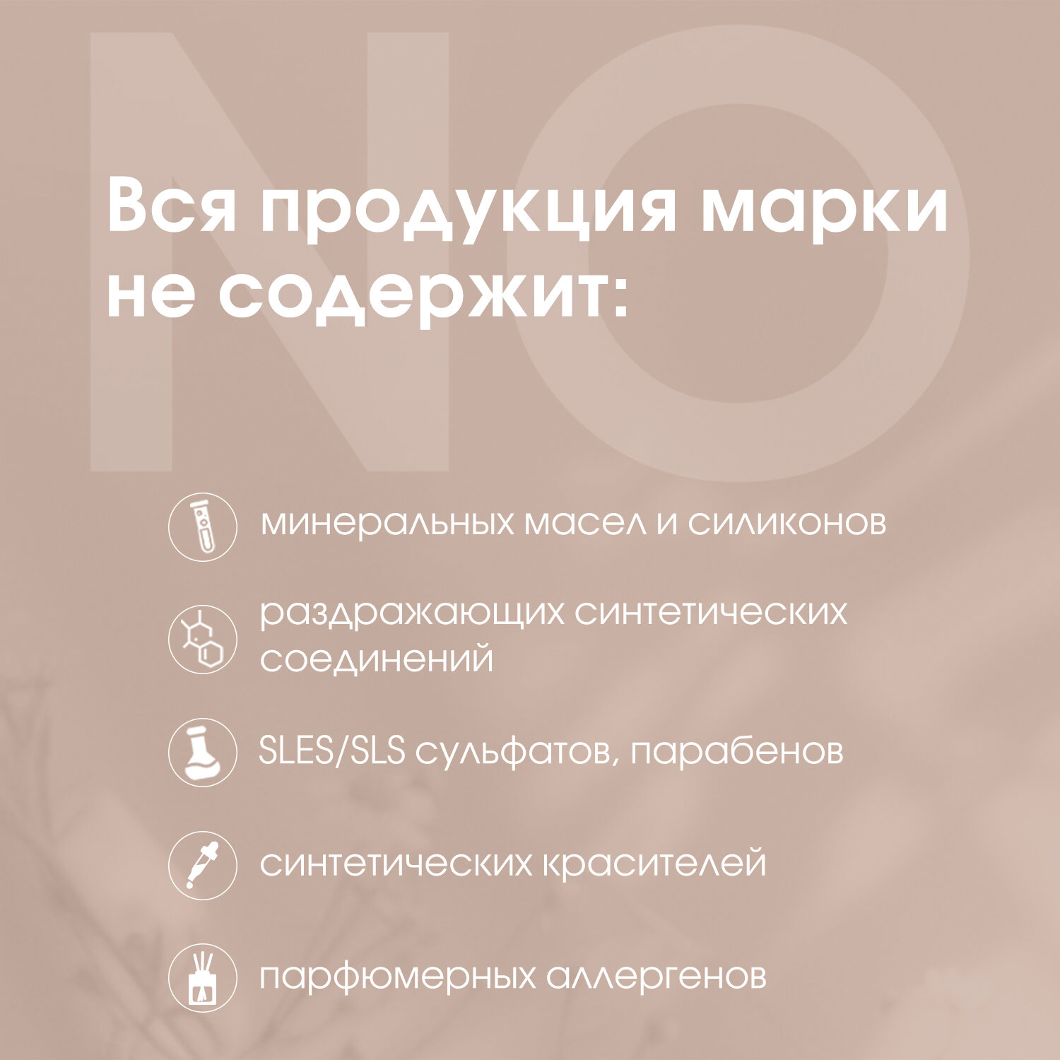 | Не содержит | красители, мыло, парабены, пропиленгликоль, соли алюминия, спирт, сульфаты, формальдегид, фталатов, хлорные отбеливатели |