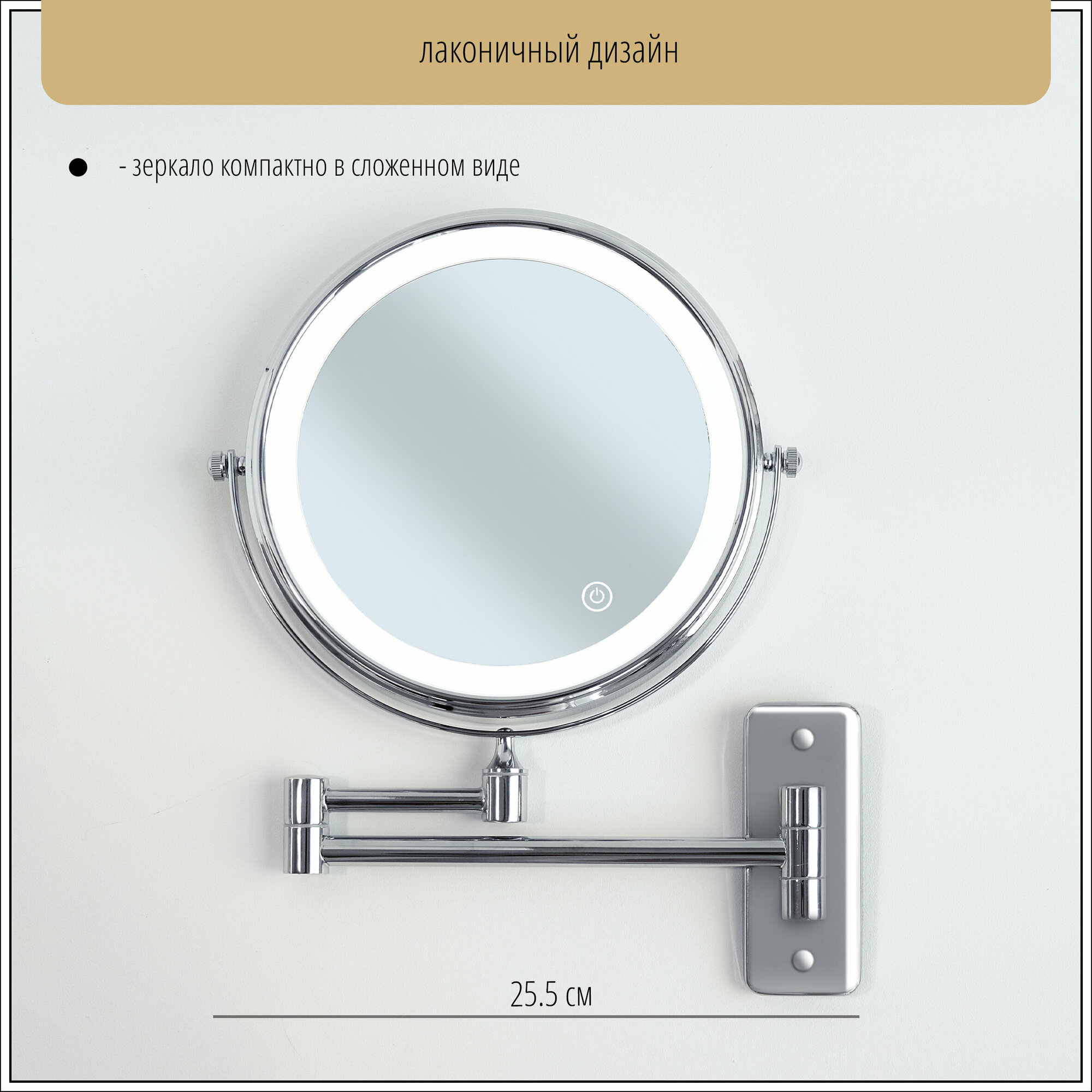 Отзывы на Зеркало косметическое для макияжа настенное с увеличением и LED подсветкой, диаметр 20 см, хром