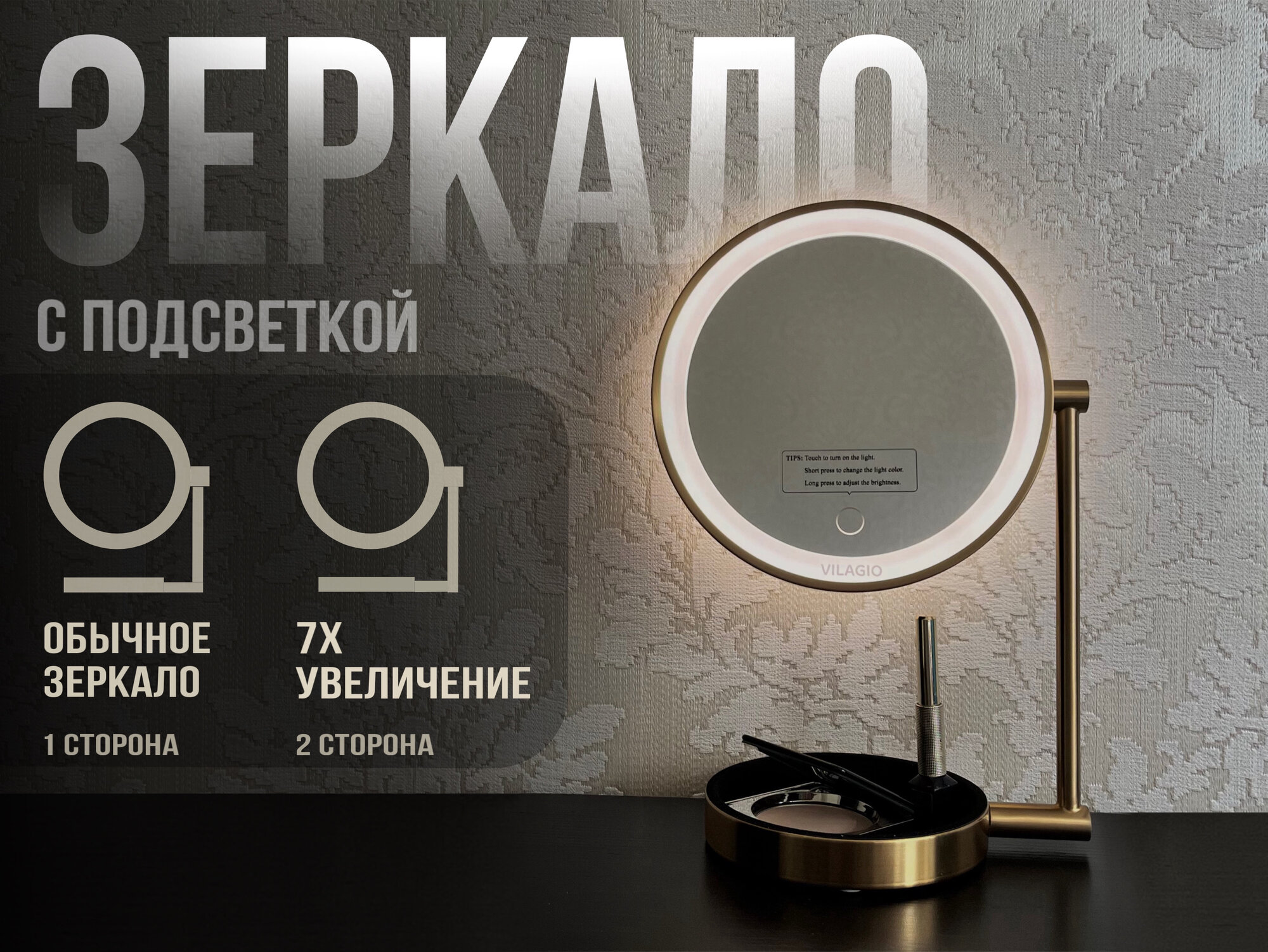 10 цен на Зеркало косметическое Ø20 см., с увеличением х7 с подсветкой, двустороннее / VILAGIO / D826SE-GGP/stol.podst.latun