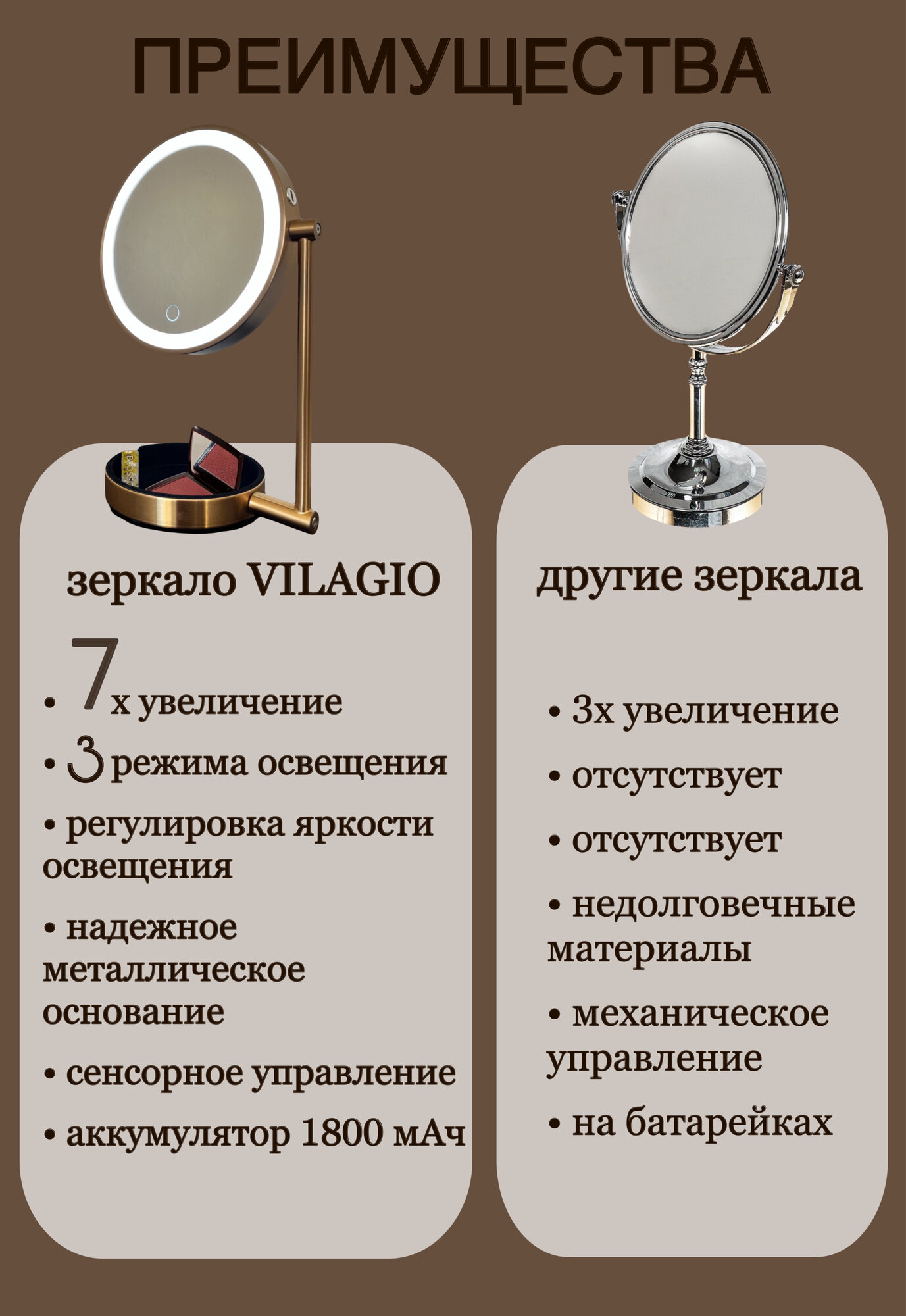10 цен на Зеркало Ø20 см., увеличительное х7 с подсветкой, двустороннее / VILAGIO / D849SE-GGP/nasten.hrom