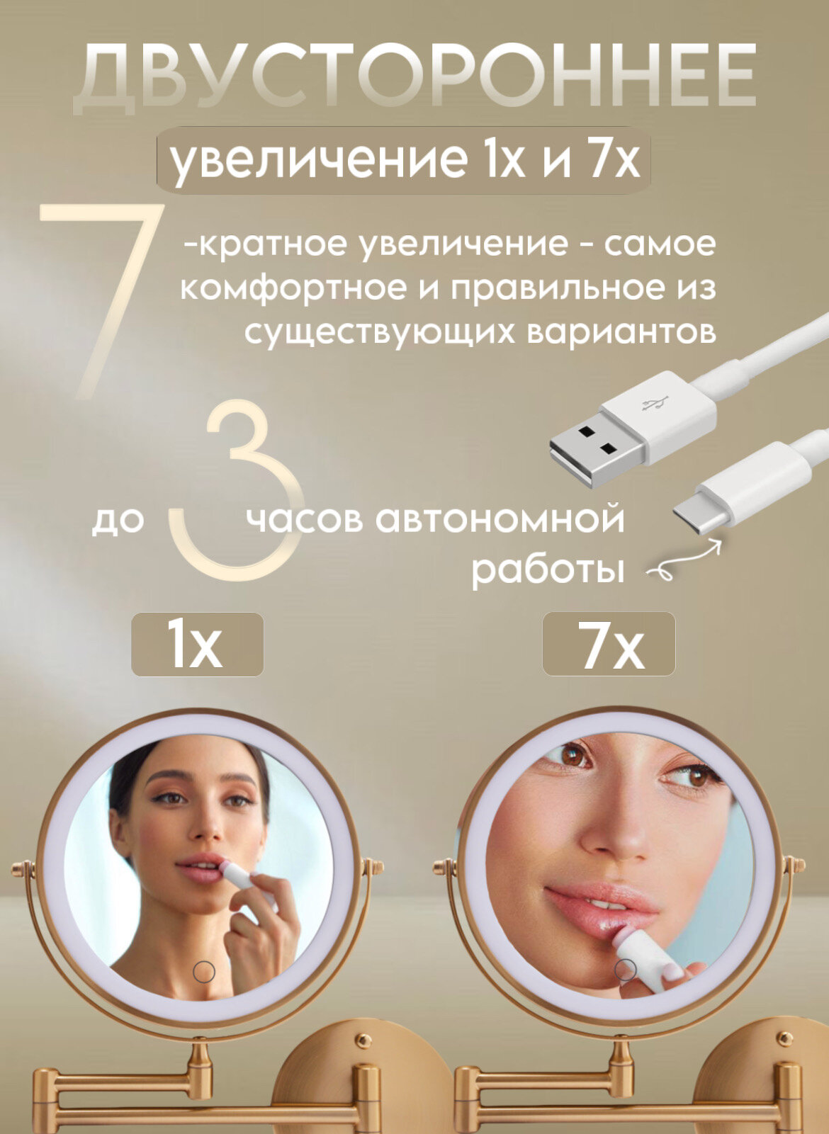 | Комплектация | зеркало, кабель зарядки, инструкция, упаковка |