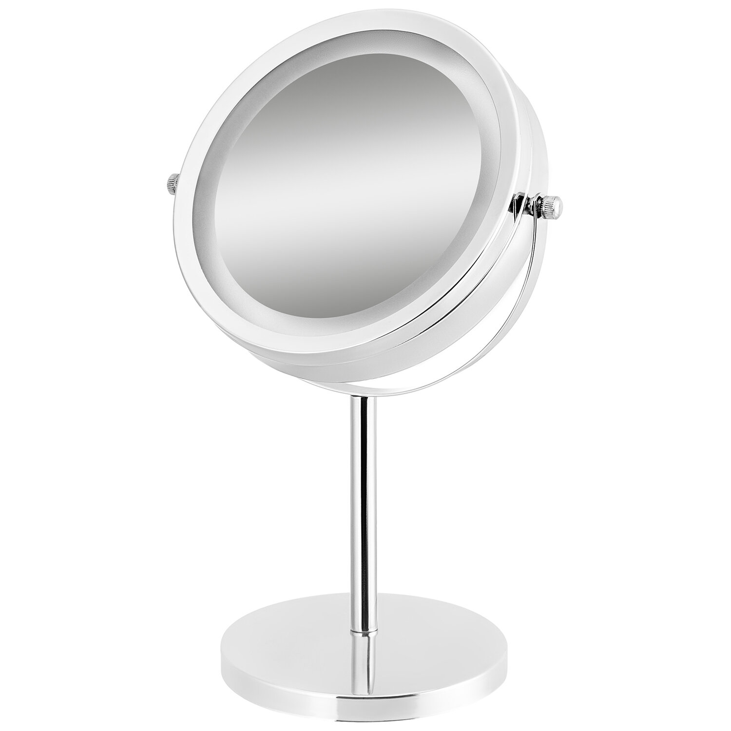 | Дополнительная информация | Зеркало двустороннее на подставке 20,5х13,5х31,5 см, со светодиодной подсветкой, с кнопочным переключателем, батарейки 4 шт. ААА (в комплект не входят), диаметр зеркала 17,5 см, размер подставки 13,5х13,5х1,5 см, длина ножки 11,5 см (не регулируется по высоте), одна сторона с трехкратным увеличением, зеркало вращается на 360 градусов. |