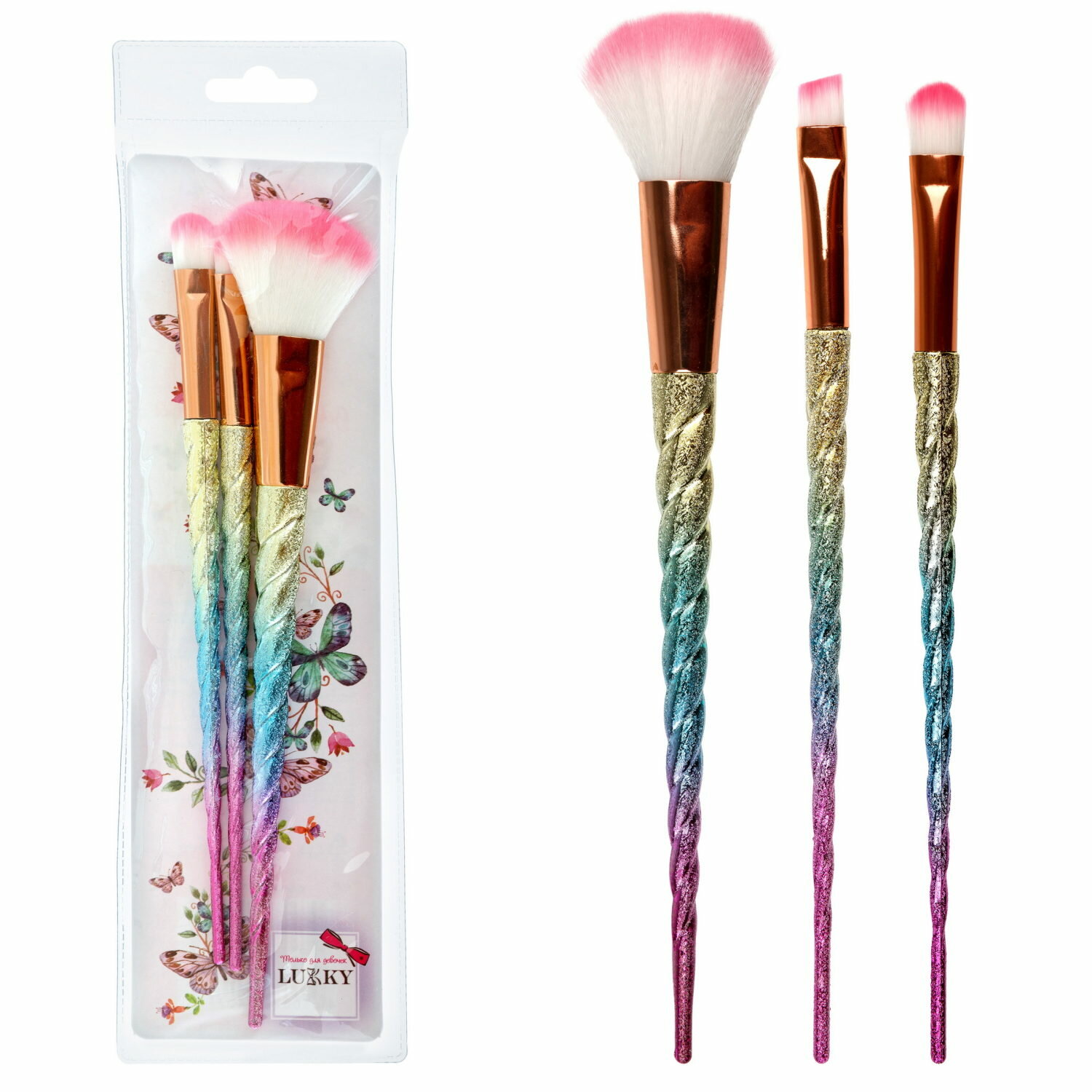 10 цен на Набор кисточек LUKKY 3 кисти для нанесения макияжа "Единорог"