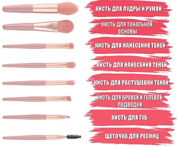 10 цен на Кисти для макияжа профессиональные набор розовый. Кисть для бровей глаз теней 8 шт. Себе и в подарок.