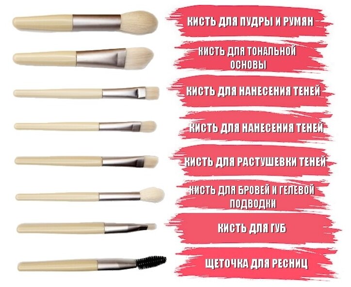 10 цен на Кисти для макияжа профессиональные набор бежевый. Кисть для бровей глаз теней 8 шт. Себе и в подарок.
