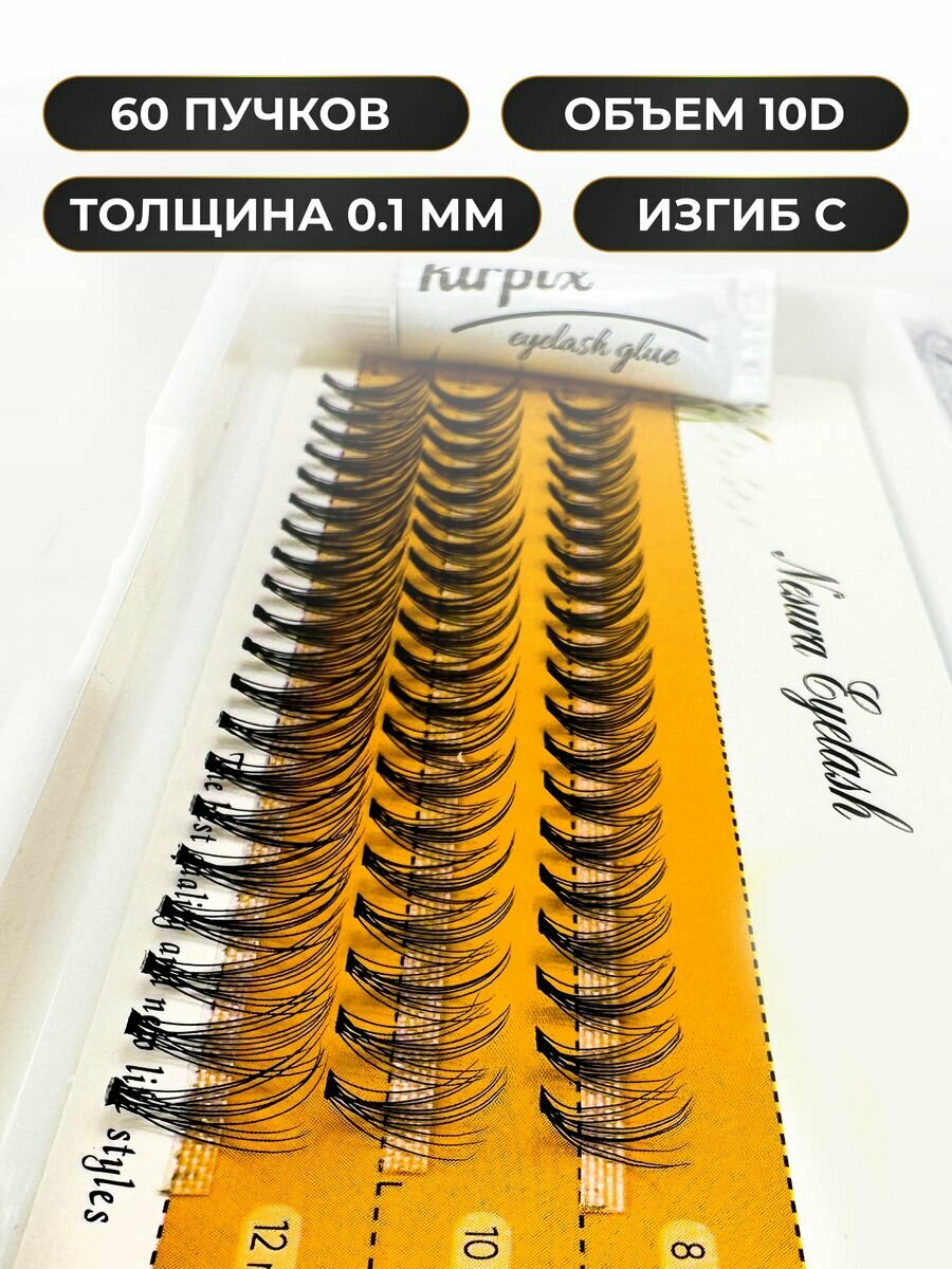 10 цен на Накладные ресницы с клеем пучки многоразовые 8-12 мм