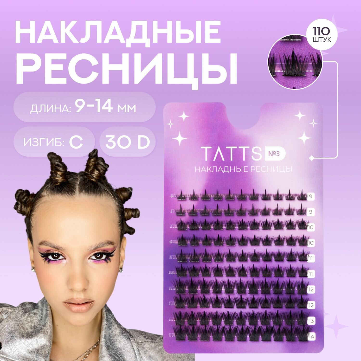 10 цен на Tatts Накладные пучки ресниц Драконий хвост, объем 30D, изгиб C, длина 9-13мм, № 3