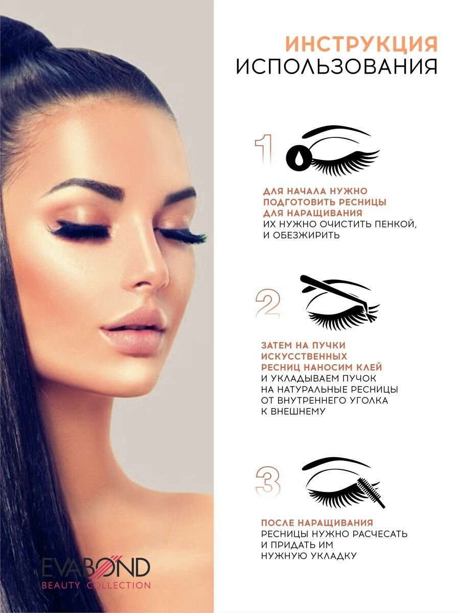Ресницы пучки безузелковые накладные для наращивания EvaBond 10 волосков, 8 мм информация:
