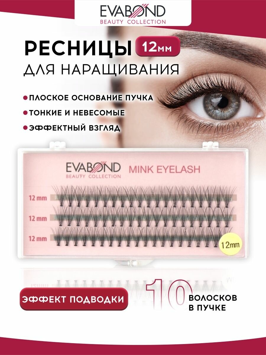 Ресницы пучки безузелковые накладные для наращивания EvaBond 10 волосков, 12 мм информация: