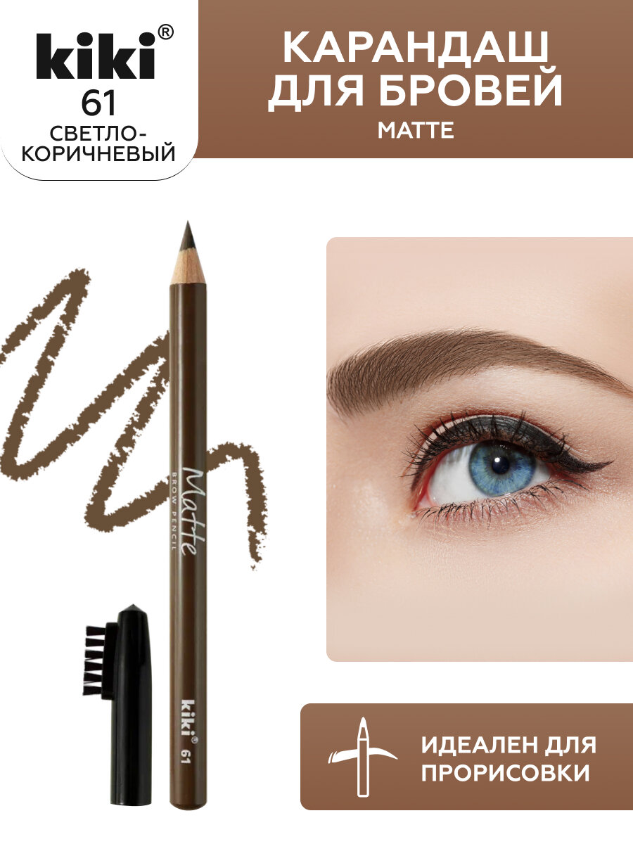 Карандаш для бровей kiki eyebrow matte, тон 61 светло-коричневый, с щеточкой-расческой для моделирования и прорисовки, стойкий макияж бровей 128 ₽