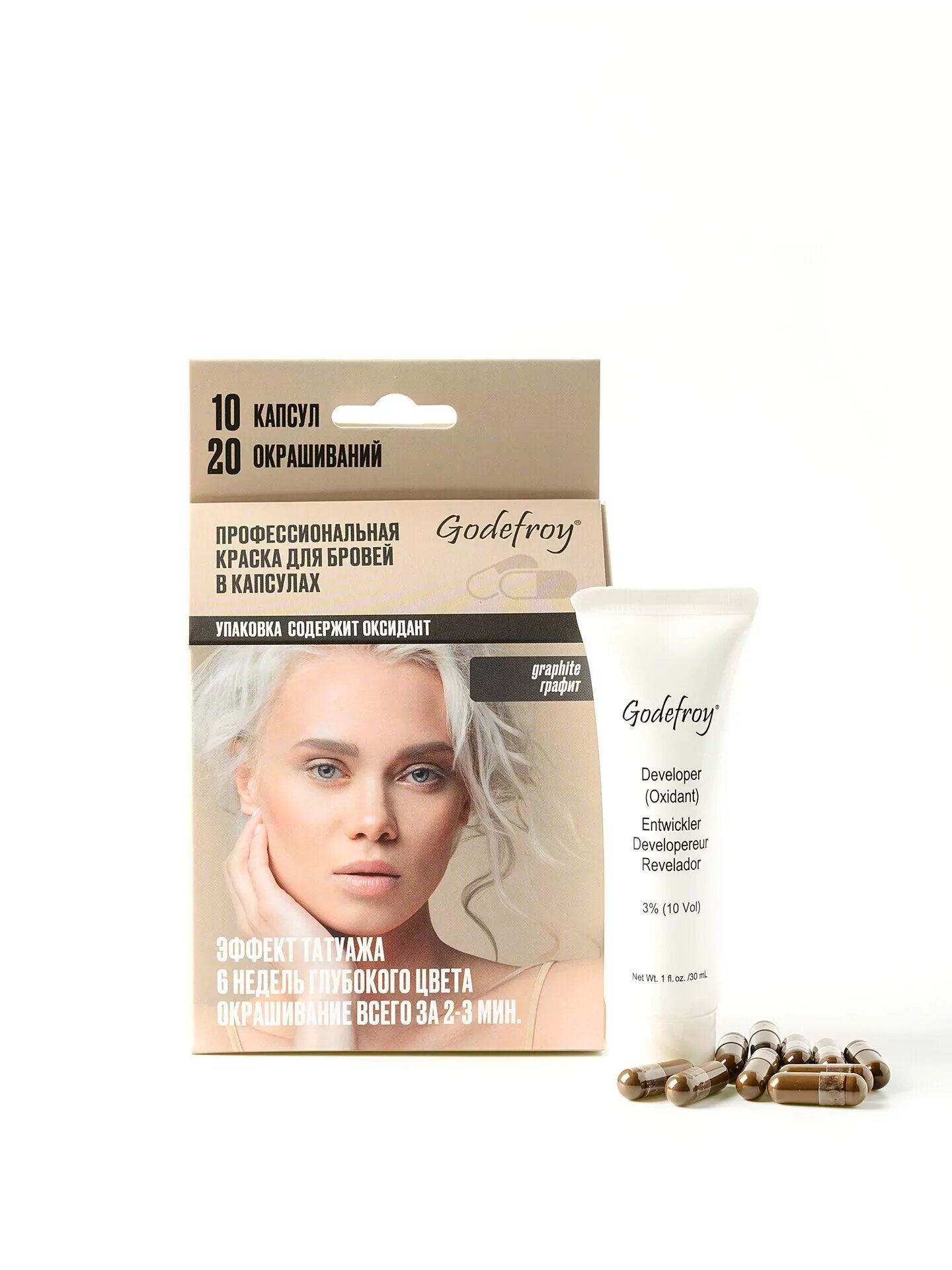 10 цен на Краска-тинт GODEFROY для окрашивания бровей с эффектом татуажа, 10 капсул (графит)