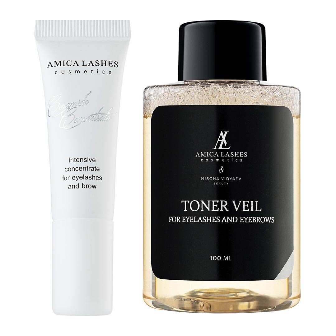 10 цен на Amica Lashes Набор PRO Церамид концентрат +Amica Lashes Тонизирующая вуаль для ресниц и бровей ;10 мл + 100 мл