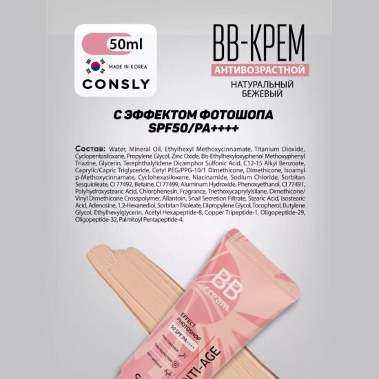 Consly Антивозрастной ББ- крем с эффектом фотошопа SPF50/PA++ Натуральный бежевый, 50мл информация:
