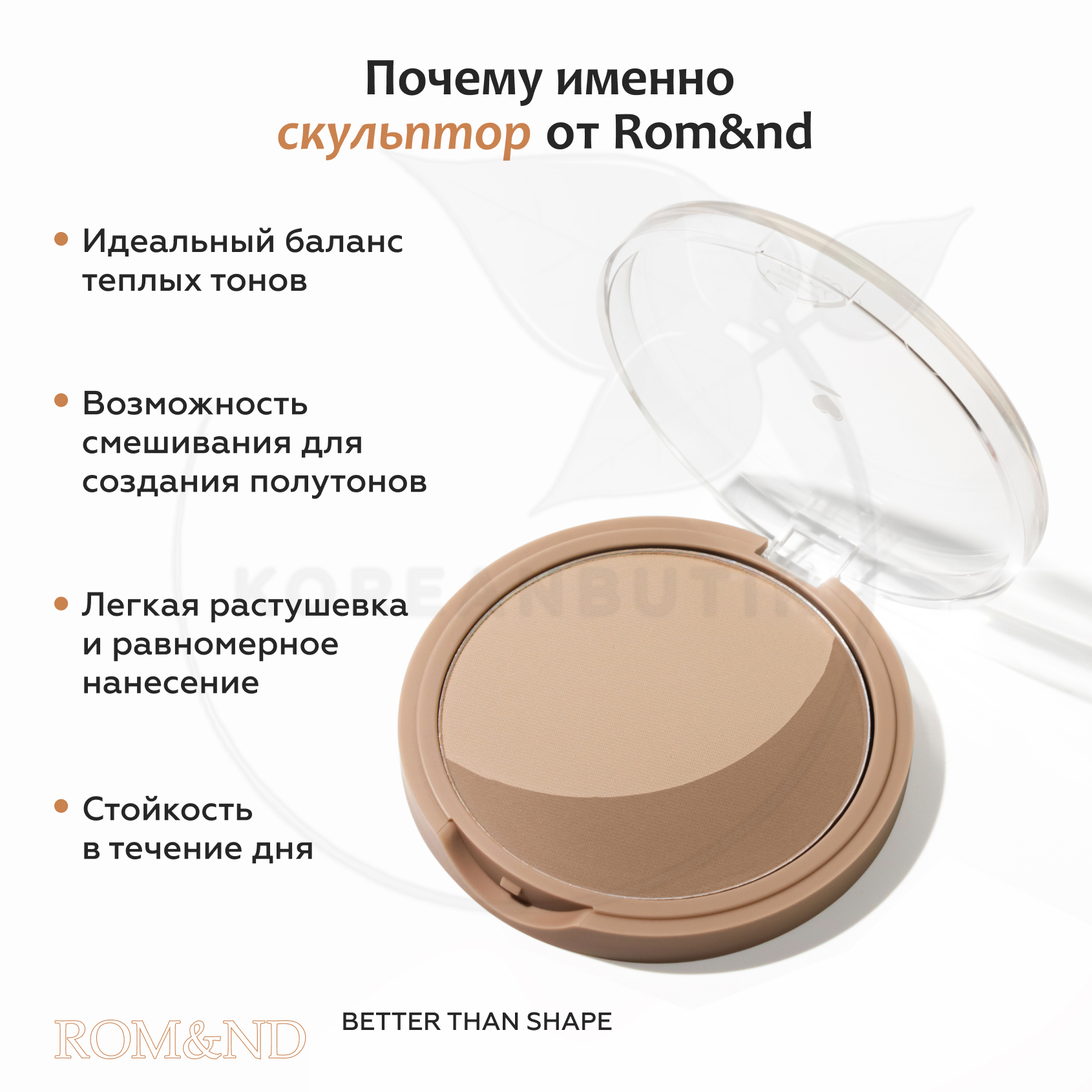 10 цен на Пудровый скульптор для лица Rom&Nd Better Than Shape 02 WALNUT GRAIN (теплый подтон)