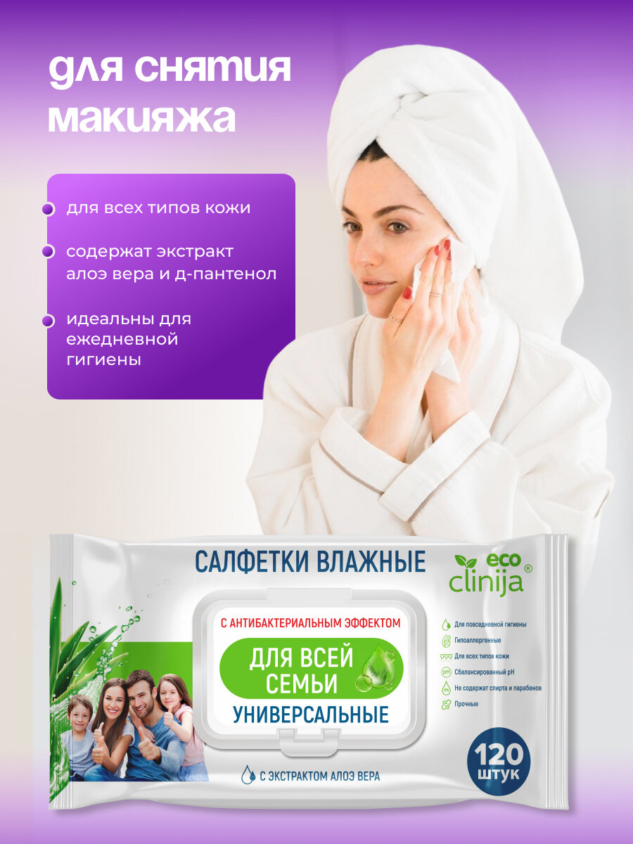 Влажные салфетки ECO Для Всей семьи антибактериальные с Алоэ вера 6 упаковок по 120 шт.+подарок, с клапаном, гипоаллергенные, без спирта информация: