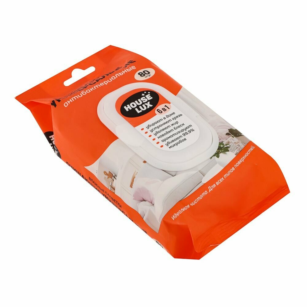 House Lux № 80 Антибактериальные универсальные влажные салфетки 6 in 1 ,2 шт информация: